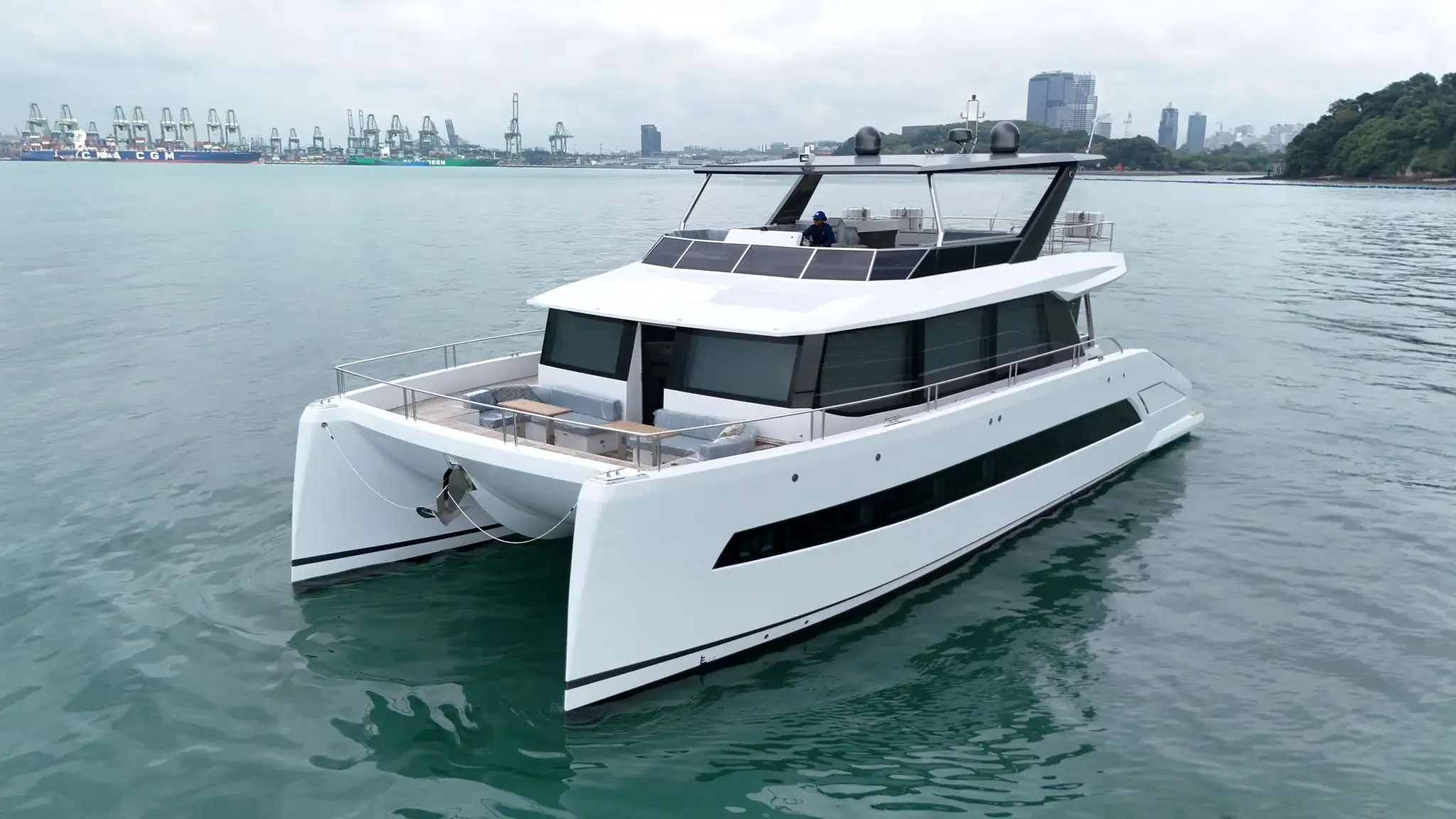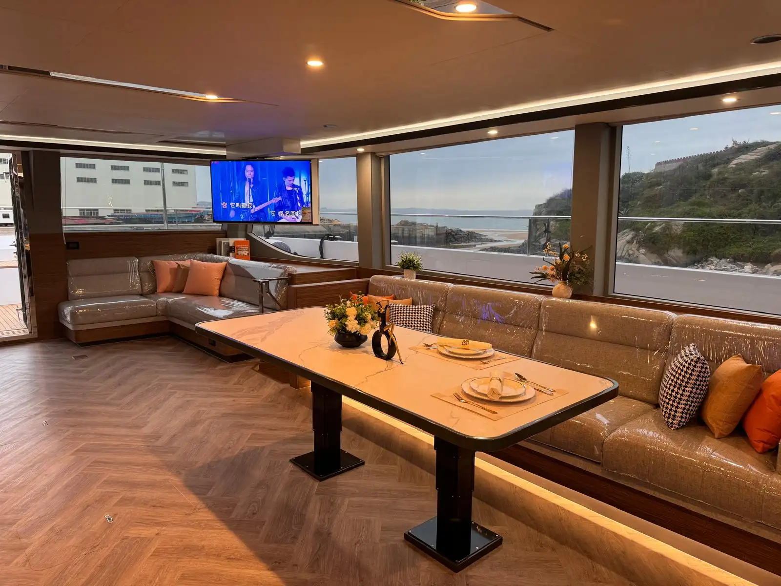 The Skywalker S60 Holiday is a luxurious 60-foot power catamaran designed foropulentsea voyages and social gatherings.The yacht accommodates up to 12 guests in its 4 elegantly appointed cabins, each featuring en-suite bathrooms, ensuring privacy and comfort. Its catamaran design enhances stability, providing a smooth cruising experience. The yacht’s design emphasizes both luxury and functionality, making it a standout choice for those seeking unparalleled comfort on the water.