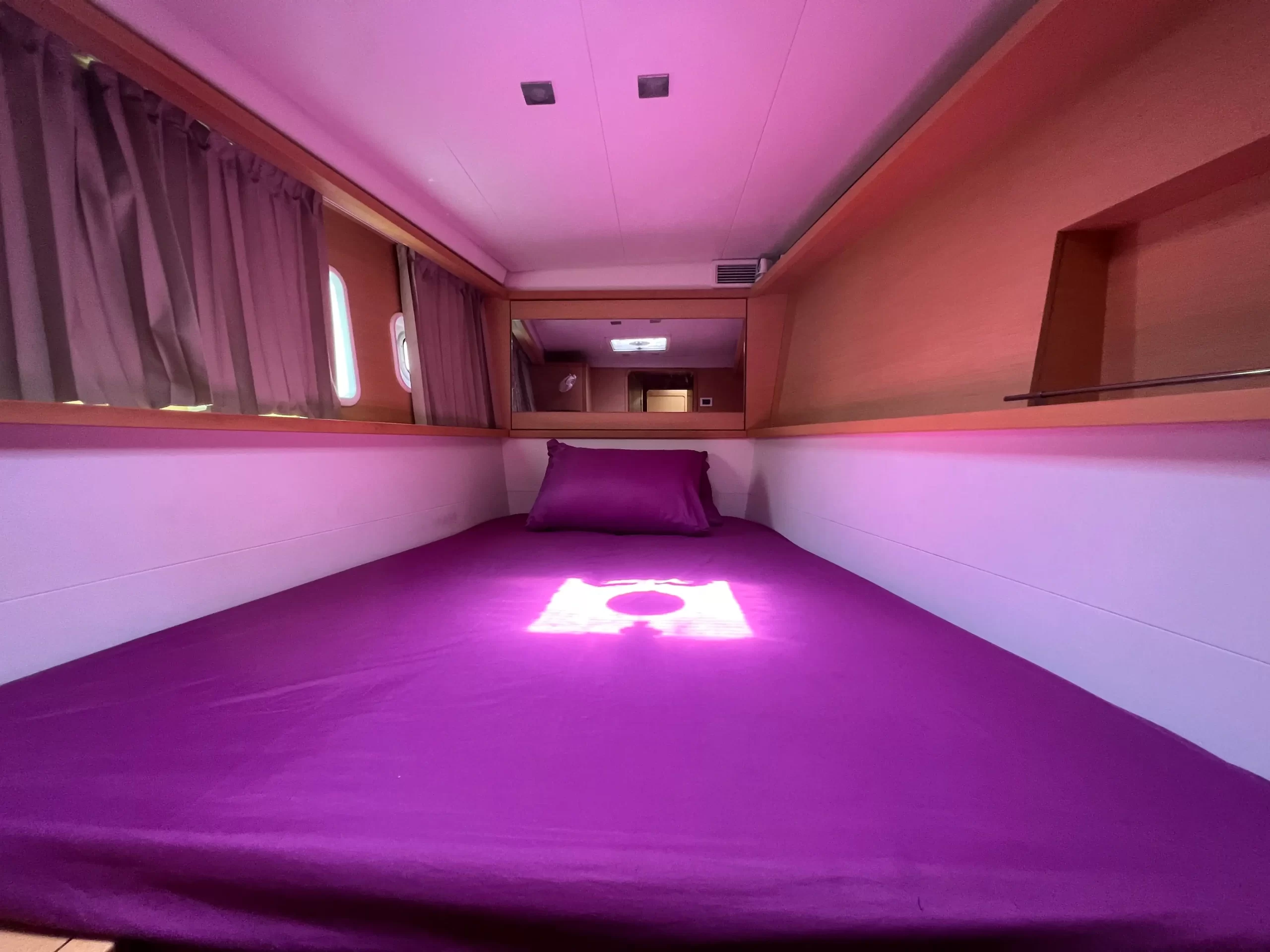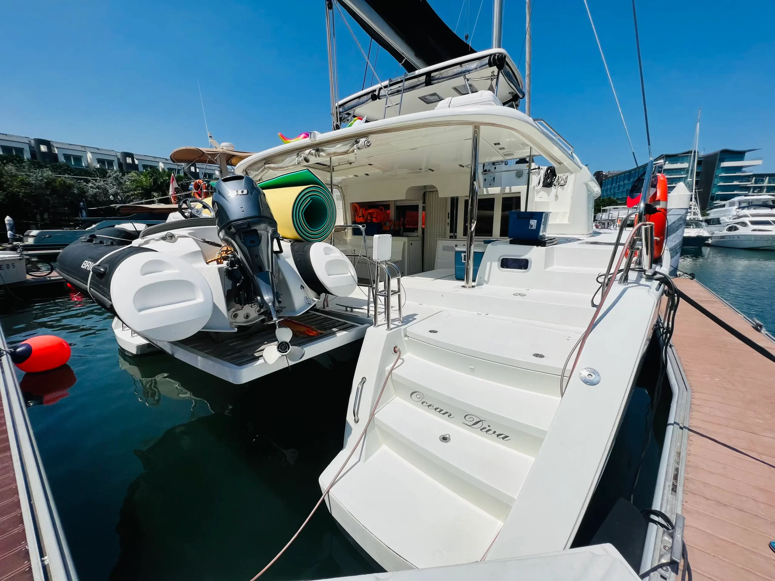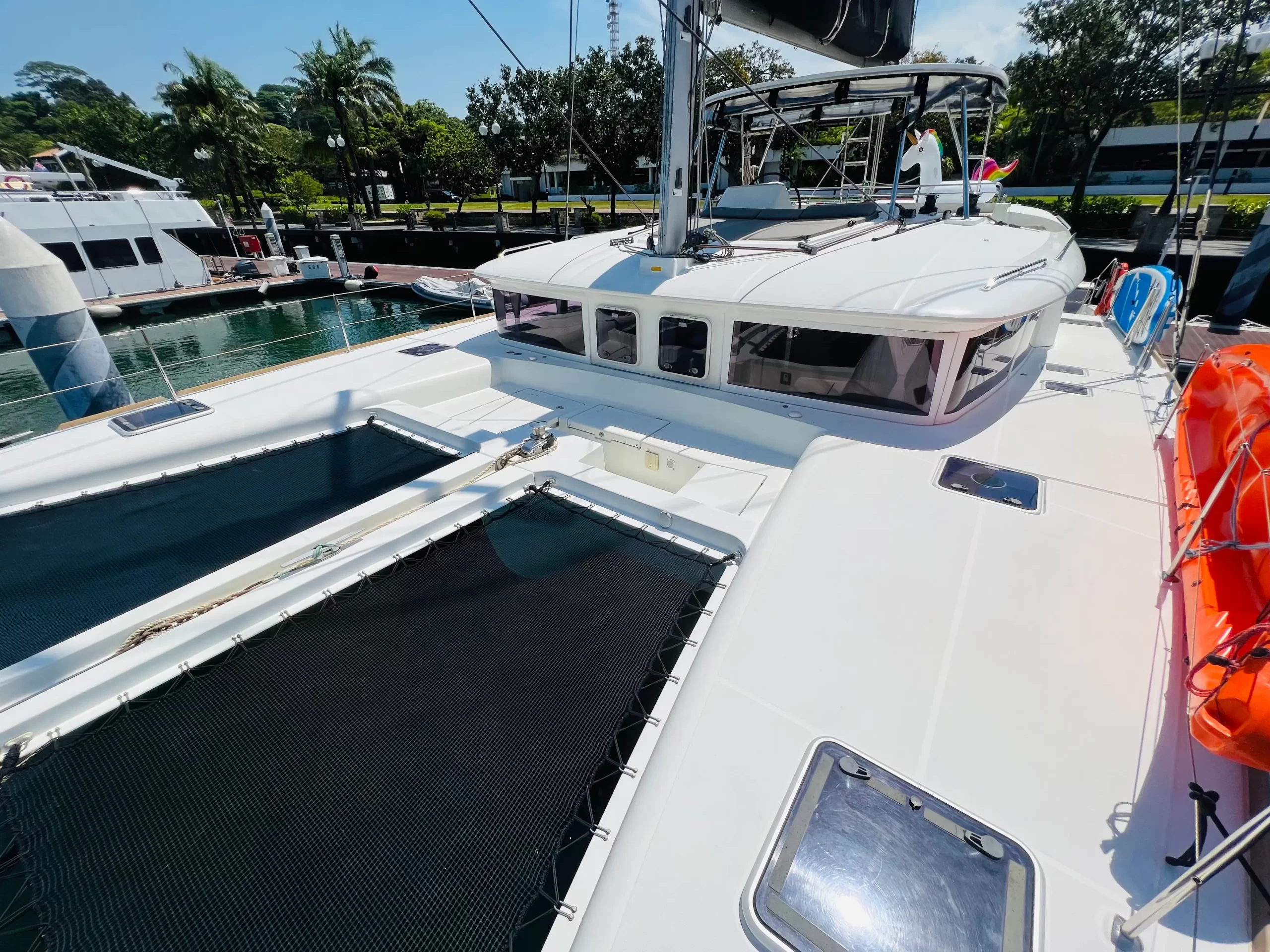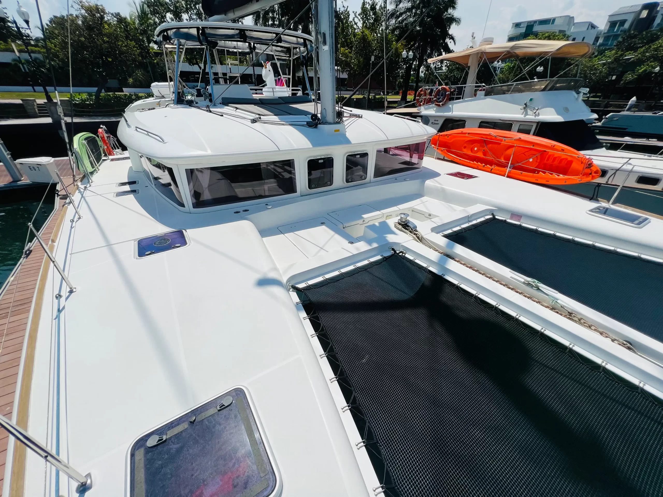 This spacious 45-foot air-conditioned Lagoon catamaran features 3 spacious cabins with 2 en-suite bathrooms, a large elegant saloon, two 8-seater dining tables and a unique cushioned seating area on the fore deck. With large areas for entertaining, this yacht is perfect for corporate and private functions such as birthdays, anniversaries etc.