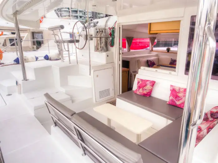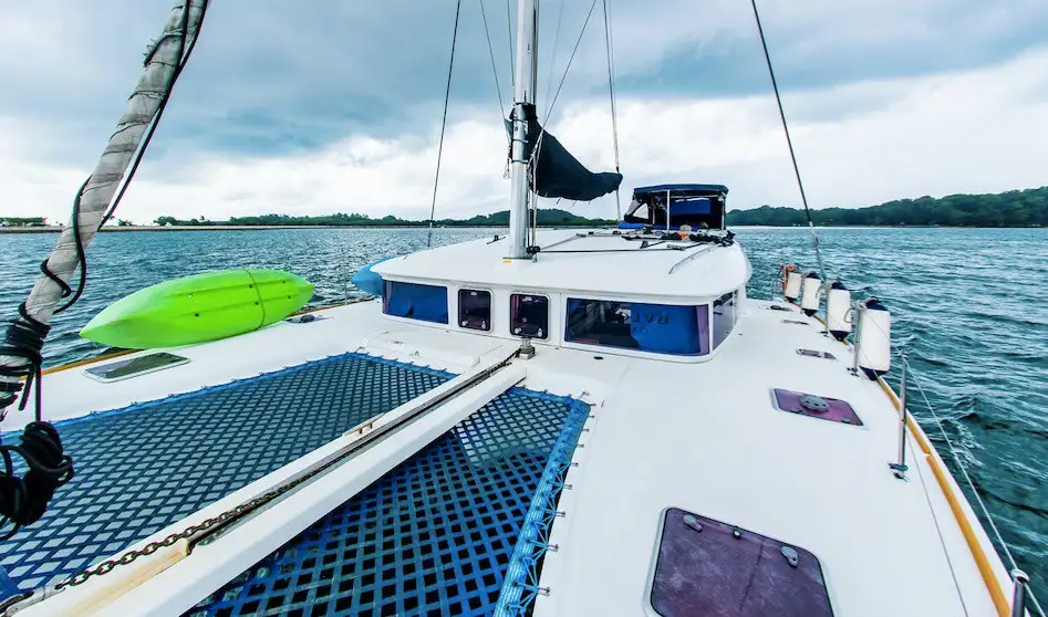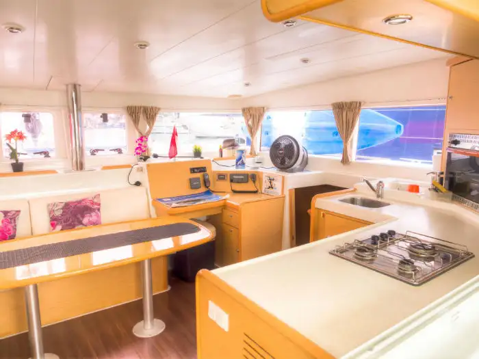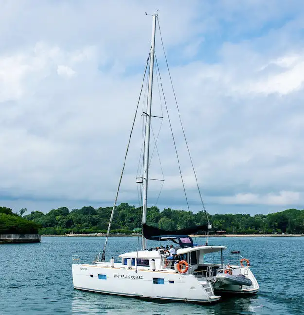 SunRise is a beautiful 40 feet sailing catamaran with 3 interior cabins, open deck space and comfort for cruising capacity of up to 18 guests, she is ideal for day or night charters. Outdoor enjoyment includes a kayak, snorkelling gear, dingy for beach excursions as well as a wide trampoline at the front bow for guests to sit on when Sunrise is underway. Guests may even sleep on the trampoline at night! With a very shallow keel, Sunrise may go into shallow water closer to the beaches. Sunrise also have a motorized dingy which can ferry people, food, and gear to the beach for lunch or a sunset dinner.
