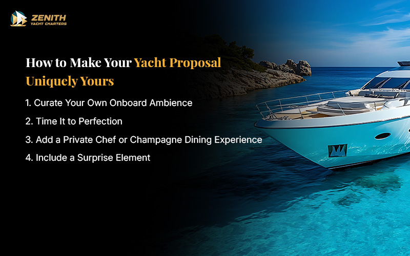 Holding a wedding proposal on a yacht is already extraordinary, but the real magic comes from tailoring it to your love story. By weaving in details that reflect your relationship—whether it’s the music, the timing, or a surprise—you can transform a beautiful moment into one that feels unmistakably yours.