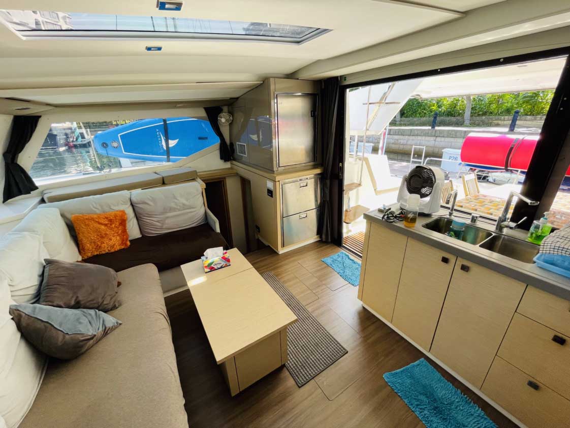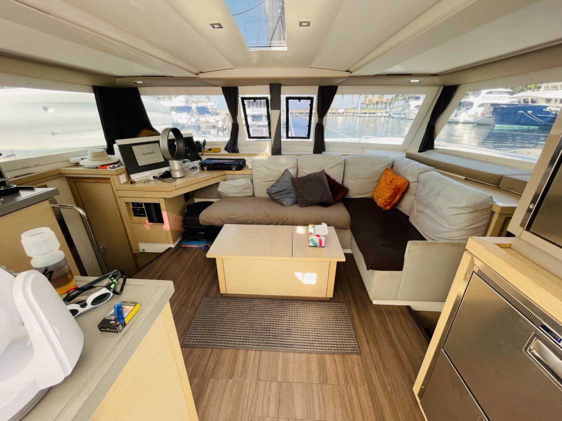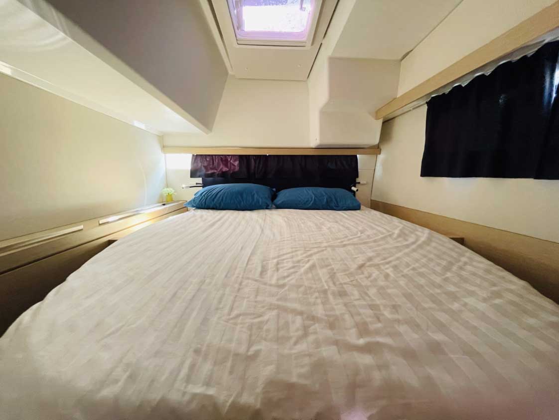 Aquaholic is a beautiful new Fountaine Pajot Lucia 40 sailing catamaran launched in September 2017. The catamaran’s sleek lines are complemented by its stylish interior design that incorporates premium quality fixtures and finishes. The interior is beautifully light courtesy of large panoramic portholes and excellent ventilation. There is a generous choice of exterior relaxation areas, and the spacious cockpit has been designed for easy entertaining at sea. Aquaholic has a fabulous living space which includes aluminous saloon, generous cabins, expansive 12m2 cockpit, and a decadent lounge area on the bow, allowing you to comfortably share experiences and create life-long memories, whatever the occasion is.