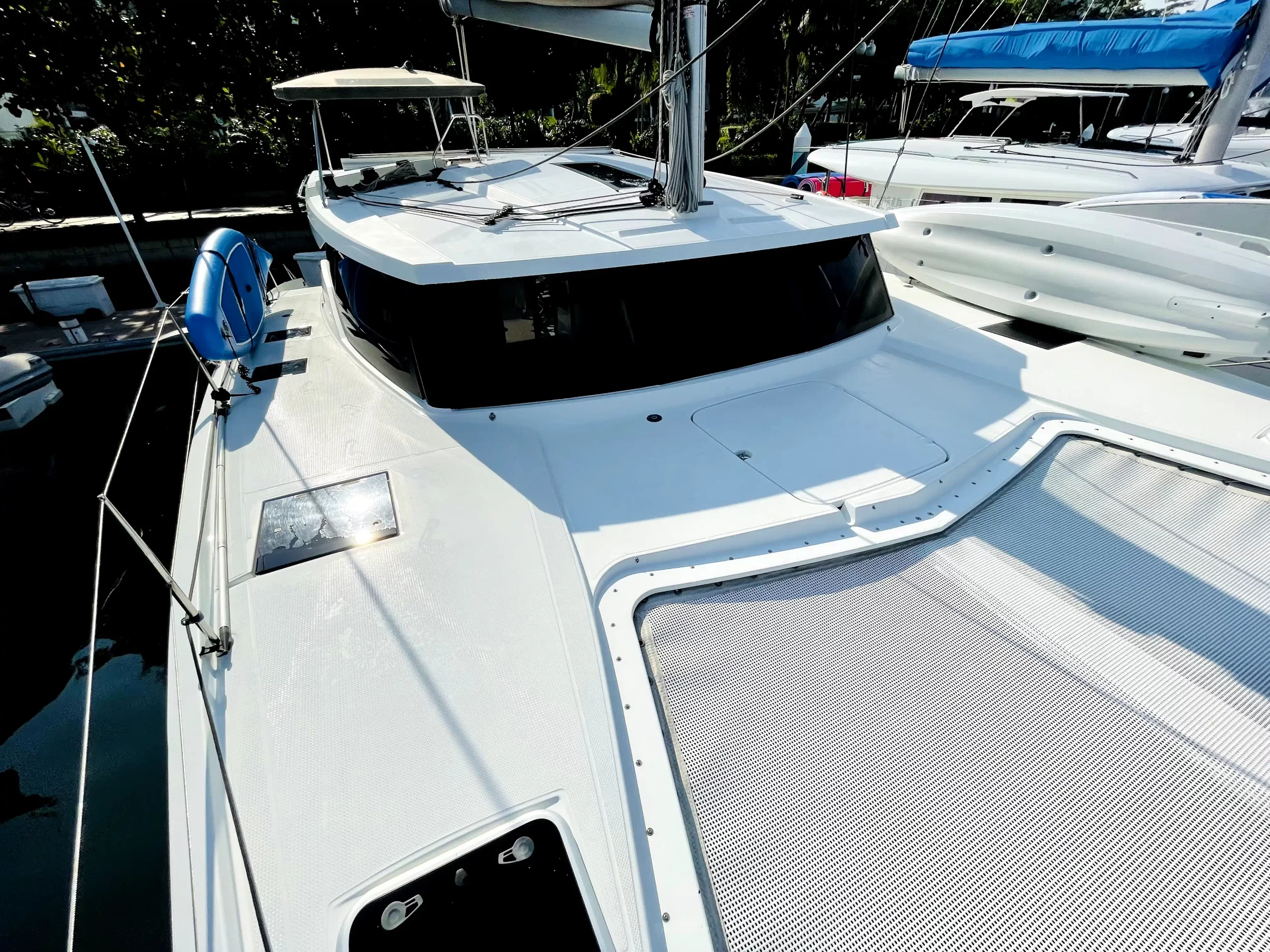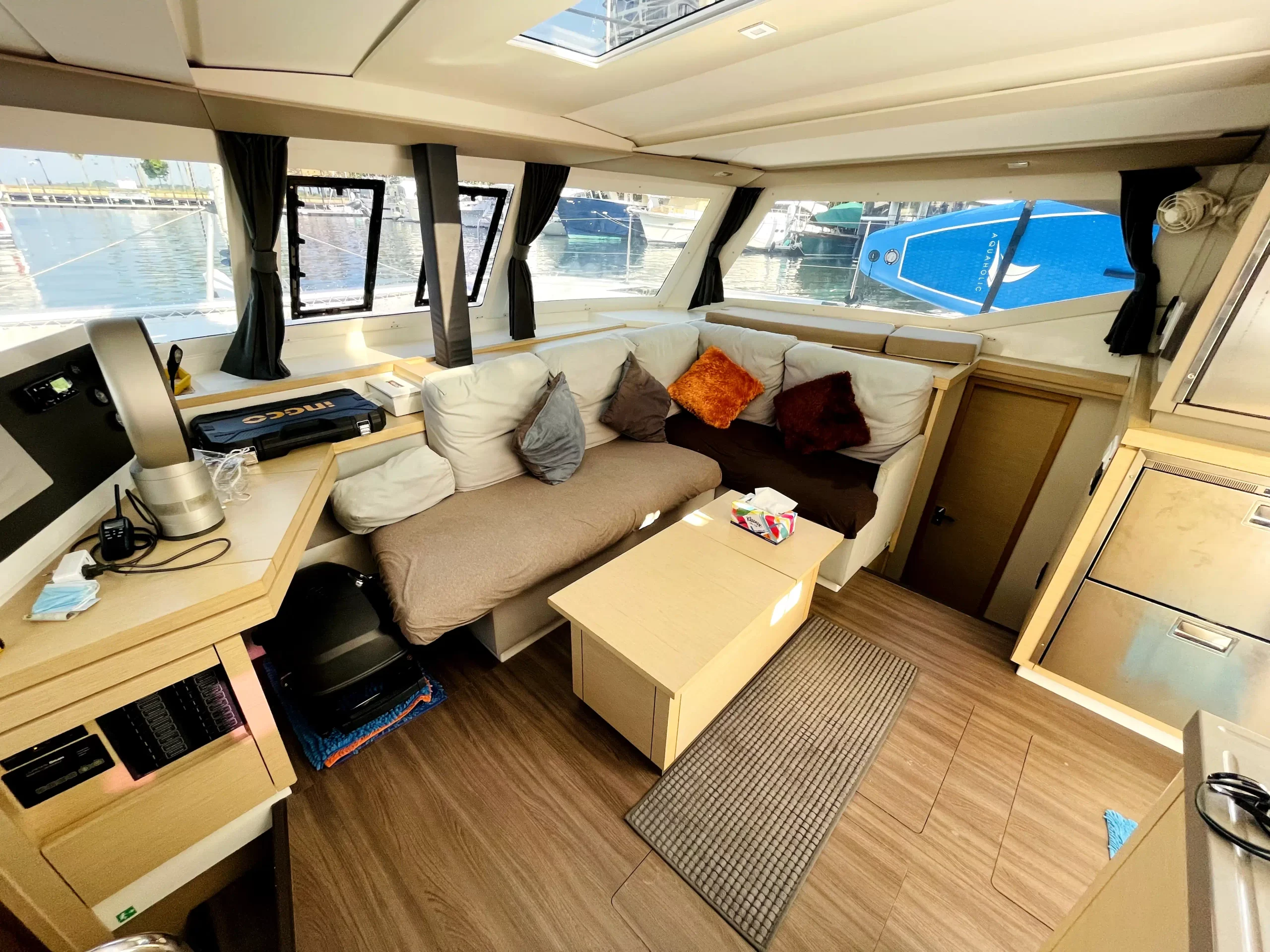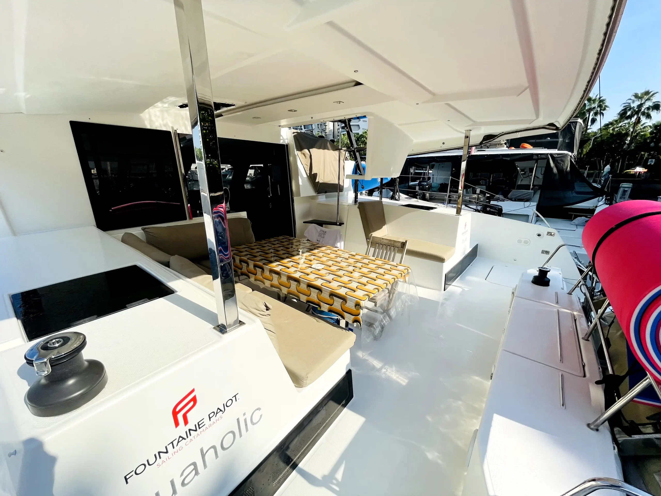 Aquaholic is a beautiful new Fountaine Pajot Lucia 40 sailing catamaran launched in September 2017. The catamaran’s sleek lines are complemented by its stylish interior design that incorporates premium quality fixtures and finishes. The interior is beautifully light courtesy of large panoramic portholes and excellent ventilation. There is a generous choice of exterior relaxation areas, and the spacious cockpit has been designed for easy entertaining at sea. Aquaholic has a fabulous living space which includes aluminous saloon, generous cabins, expansive 12m2 cockpit, and a decadent lounge area on the bow, allowing you to comfortably share experiences and create life-long memories, whatever the occasion is.