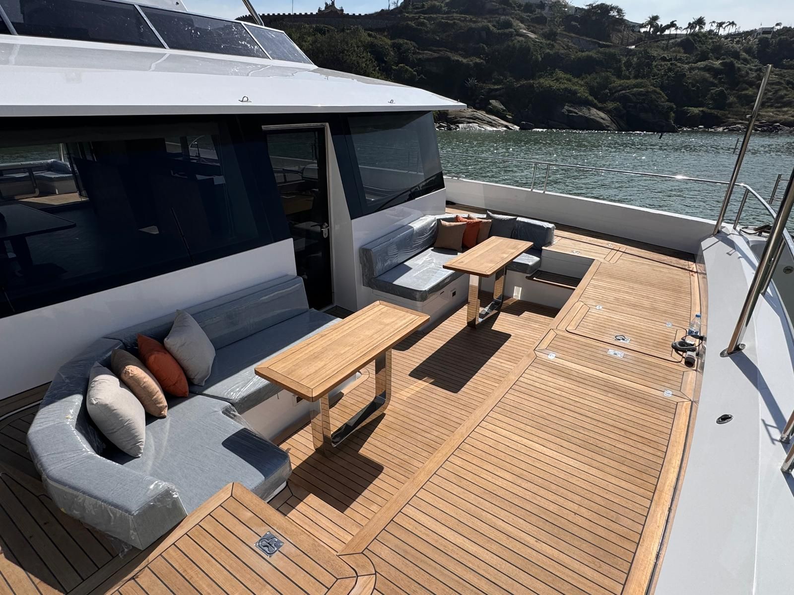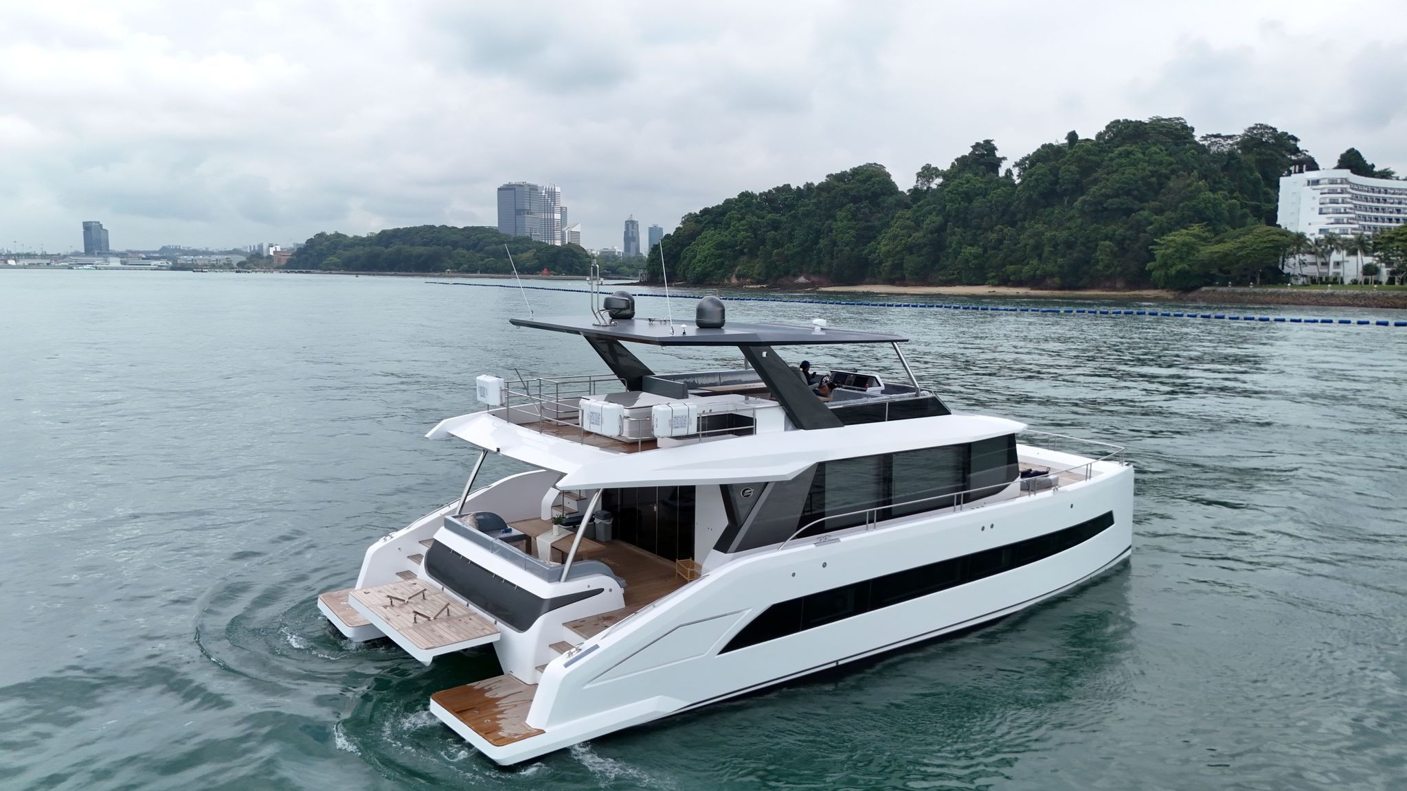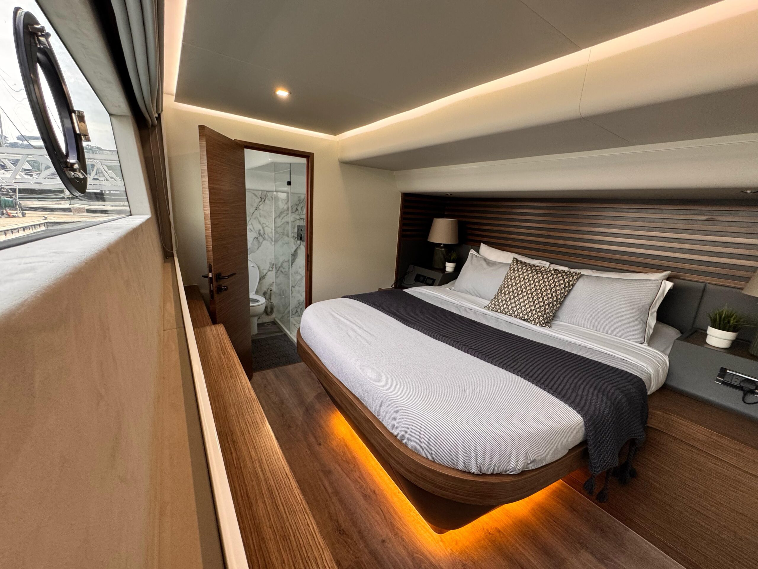 The Skywalker S60 Holiday is a luxurious 60-foot power catamaran designed foropulentsea voyages and social gatherings.The yacht accommodates up to 12 guests in its 4 elegantly appointed cabins, each featuring en-suite bathrooms, ensuring privacy and comfort. Its catamaran design enhances stability, providing a smooth cruising experience. The yacht’s design emphasizes both luxury and functionality, making it a standout choice for those seeking unparalleled comfort on the water.