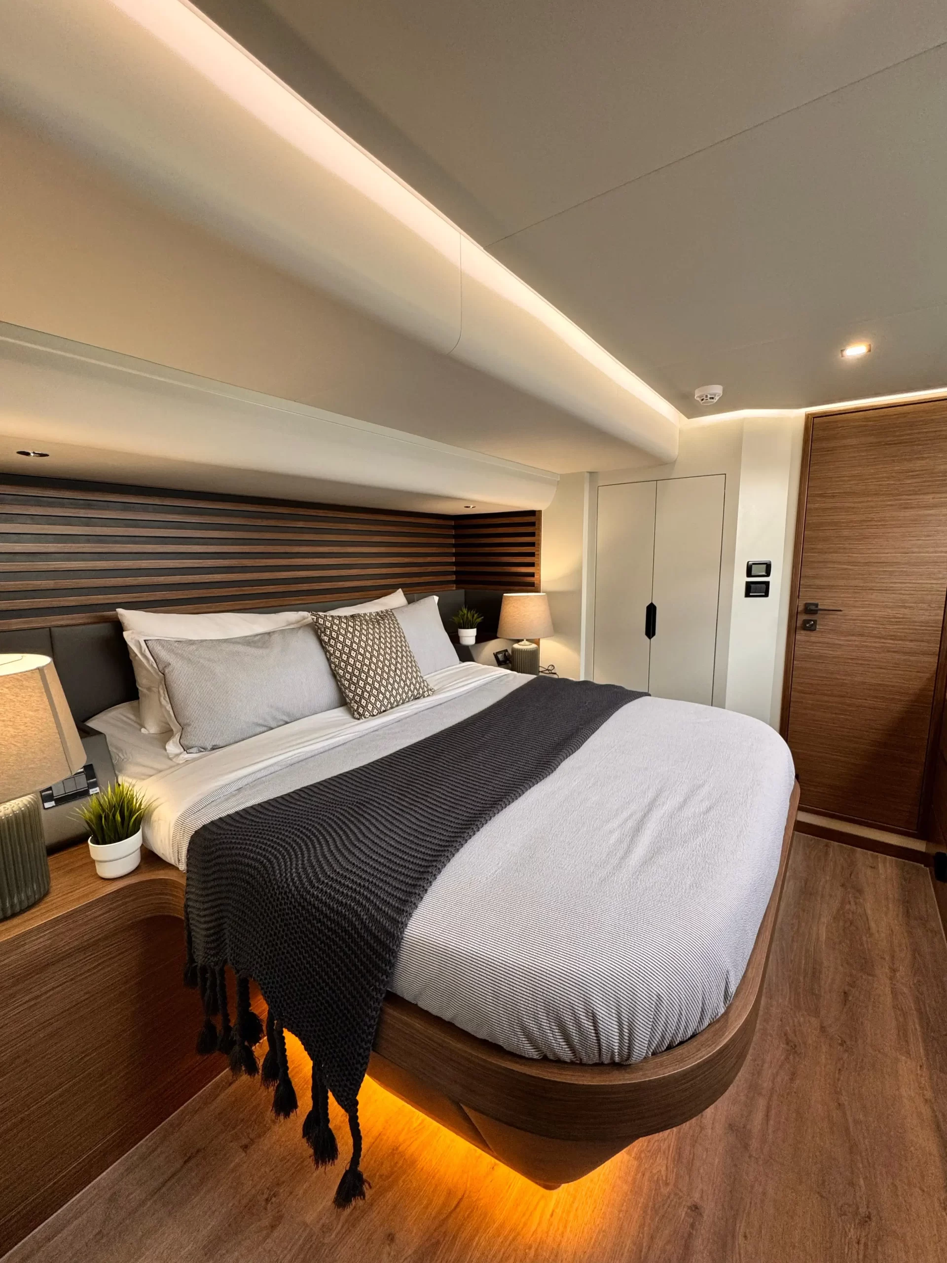 The Skywalker S60 Holiday is a luxurious 60-foot power catamaran designed foropulentsea voyages and social gatherings.The yacht accommodates up to 12 guests in its 4 elegantly appointed cabins, each featuring en-suite bathrooms, ensuring privacy and comfort. Its catamaran design enhances stability, providing a smooth cruising experience. The yacht’s design emphasizes both luxury and functionality, making it a standout choice for those seeking unparalleled comfort on the water.