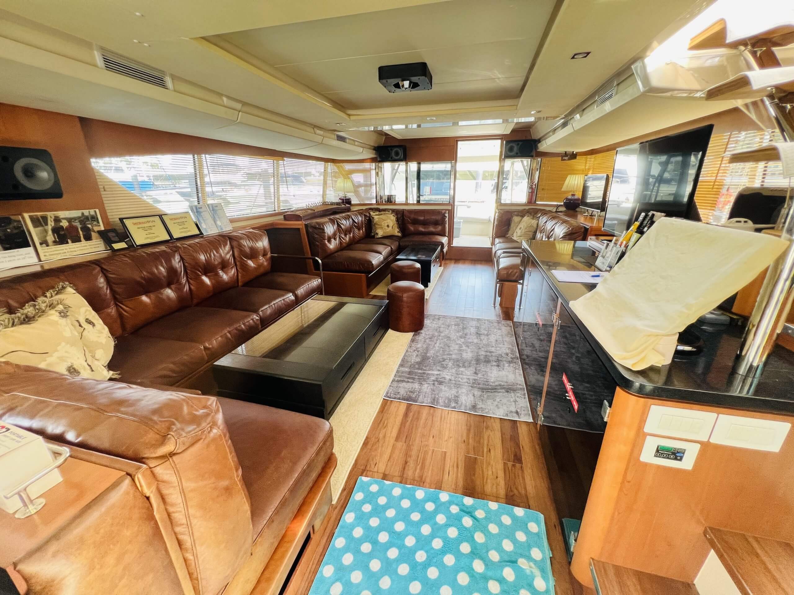 We are proud to be introducing the Aquila 48 Lan Kwai Fong Special Edition (2018 model) to the Asian market, NO NAME 2. This yacht has been designed to appeal to the Asian market and answers cultural desires for their yachting lifestyle. Aptly named Lan Kwai Fong, this special edition of the Aquila 48 delivers the energetic night life the name depicts. The main entertaining deck includes numerous seating areas, a karaoke machine, sound system and multiple flat screen televisions. A catering galley is located in the port hull, an intimate salon in the starboard hull and two resting cabins occupy the forward areas in the lower deck. The oversized flybridge with evening lighting features, seating and a superb sound system allows the party to continue outside under the stars.