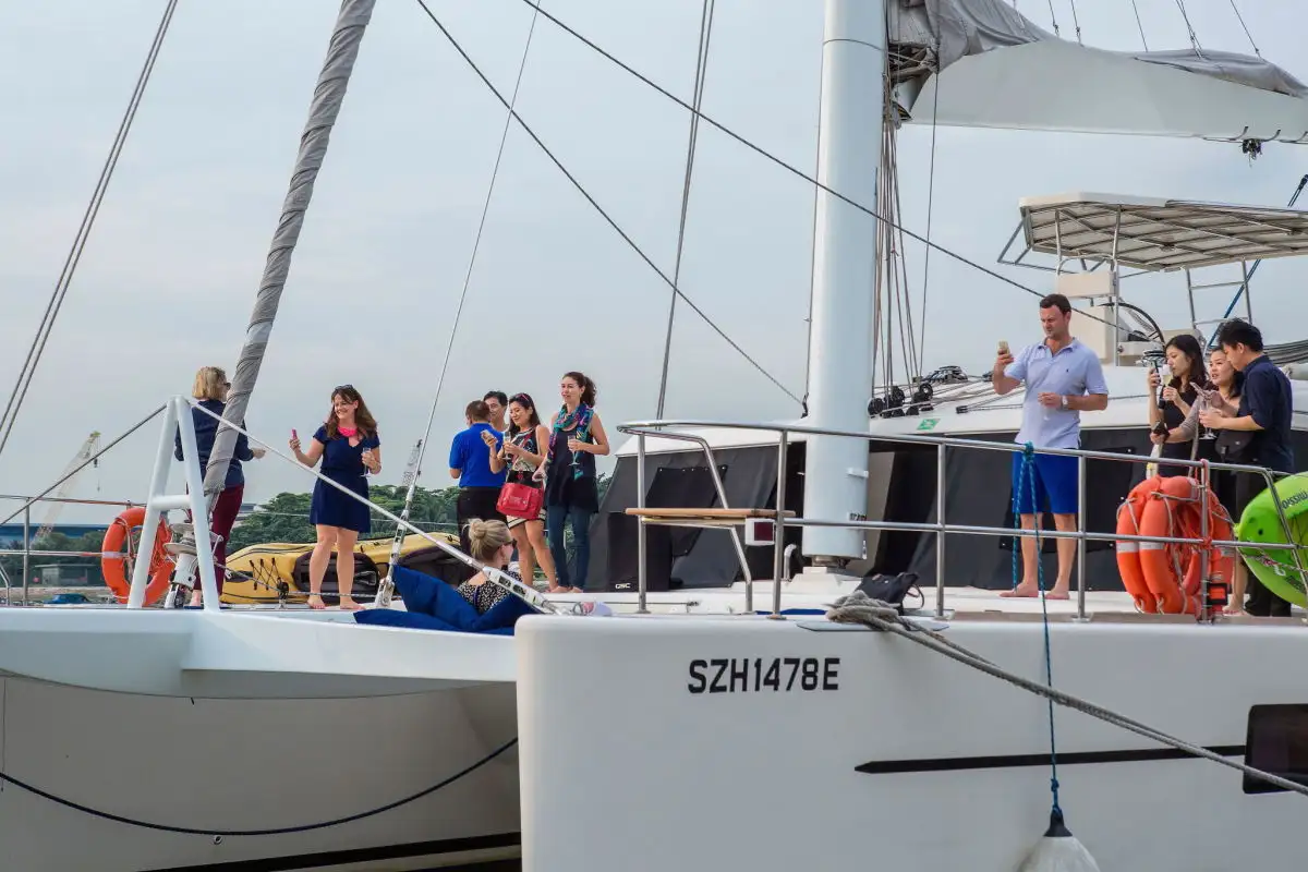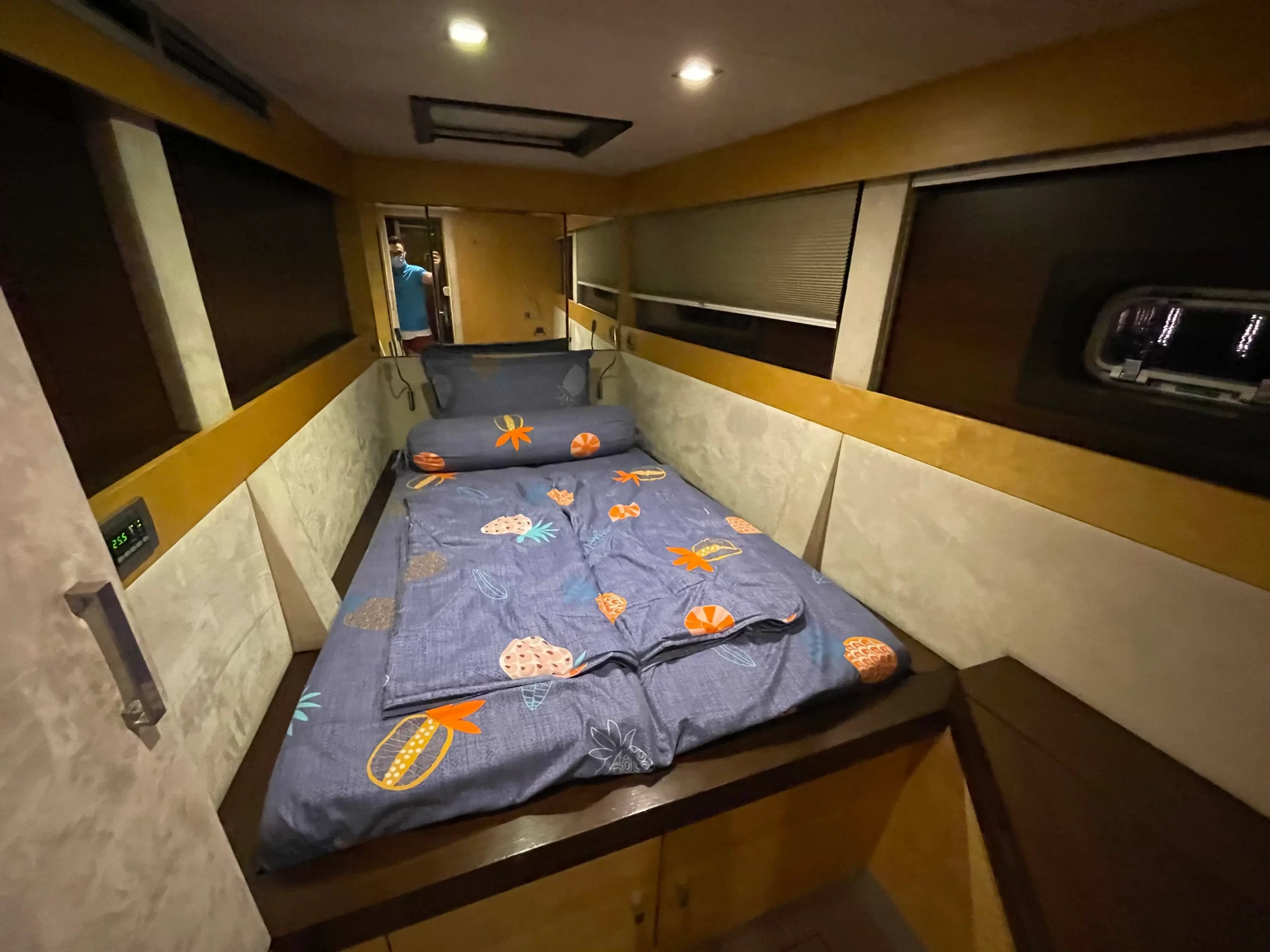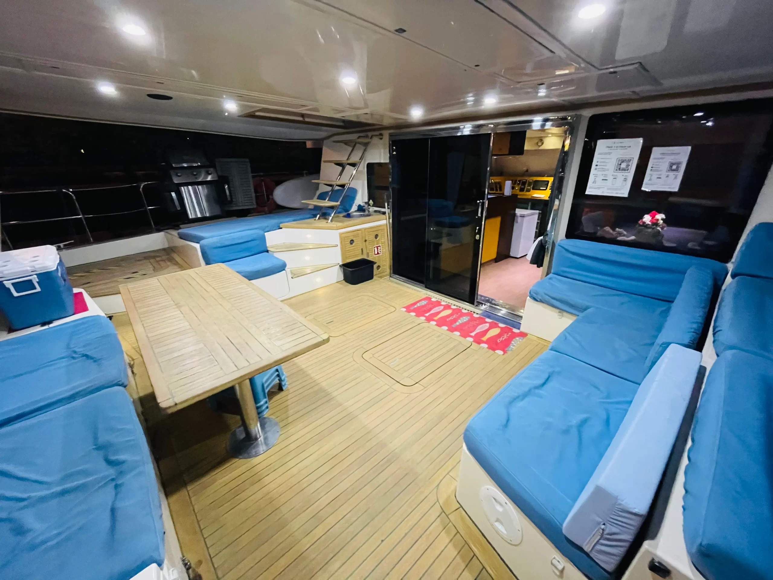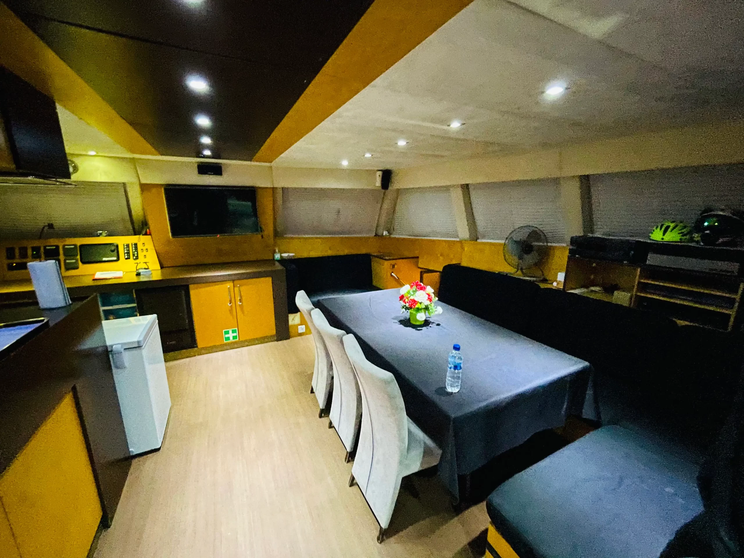 Boasting a spacious deck and luxurious interior, the Sunreef 62 is one of the largest and luxurious of yachts available for charter. This yacht easily hosts entire families, corporate teams. It is even a possible venue hold smaller-scale weddings. At the front of the yacht, you’ll find trampoline netting that spans across the width of the bow–one of the best spots to be to catch that beautiful setting sun in the cooling sea breeze. Inside, you will find a luxurious saloon that leads to multiple cabins. The saloon is fully equipped with hardware to fulfill whatever multimedia requirements your occasion may require. There is also a mini-bar amidst the various kitchen appliances that you will find in the lounge.