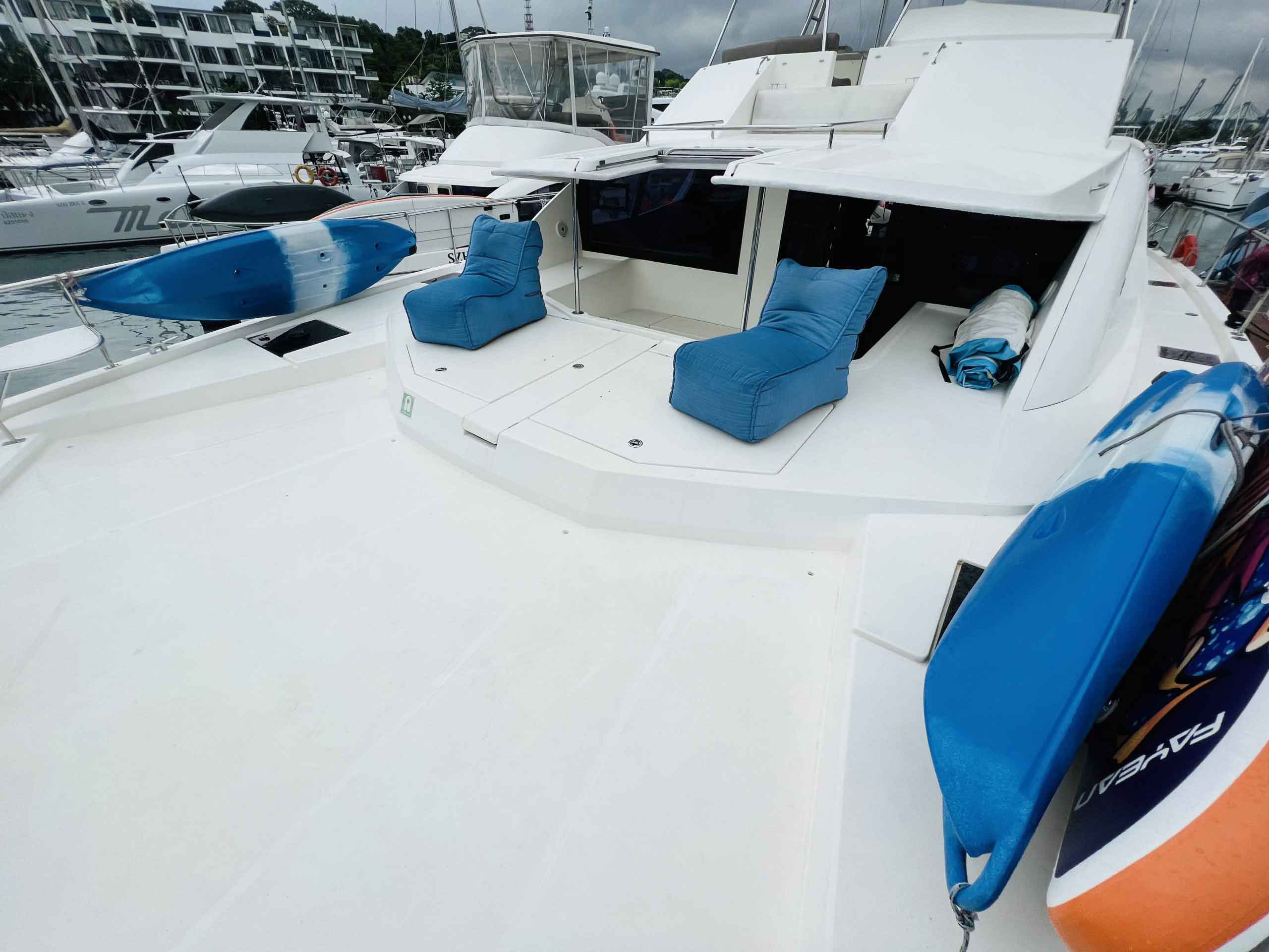 There’s plenty to do on board Valencia. For those who enjoy a good time under the sun, the yacht has facilities to ensure you have a good time. Skirt the beautiful island of Lazarus with a friend on one of the kayaks or try your hand fishing using our equipment on board. Or perhaps work on that tan you’ve been wanting to get whilst waiting for our crew to whip up a feast on the electric barbeque. If the sunshine isn’t your kind of thing, fret not for Valencia has plenty of indoor options for you as well. The yacht comes equipped with a fully air-conditioned saloon and with multimedia capabilities. Close that million dollar deal with an impressive presentation on board; or simply relax yourself as you indulge in your favourite tunes without worrying about getting sunburnt.