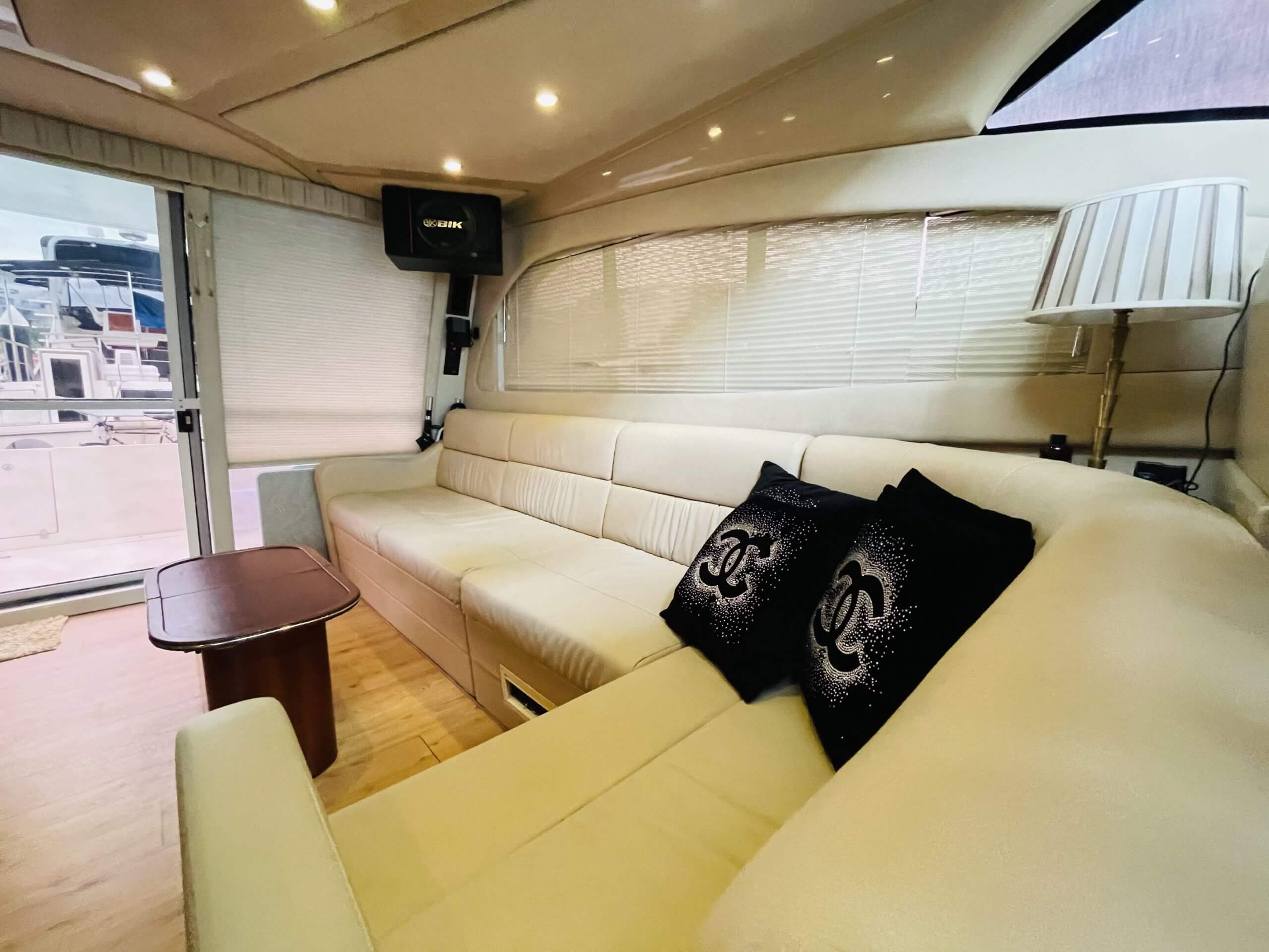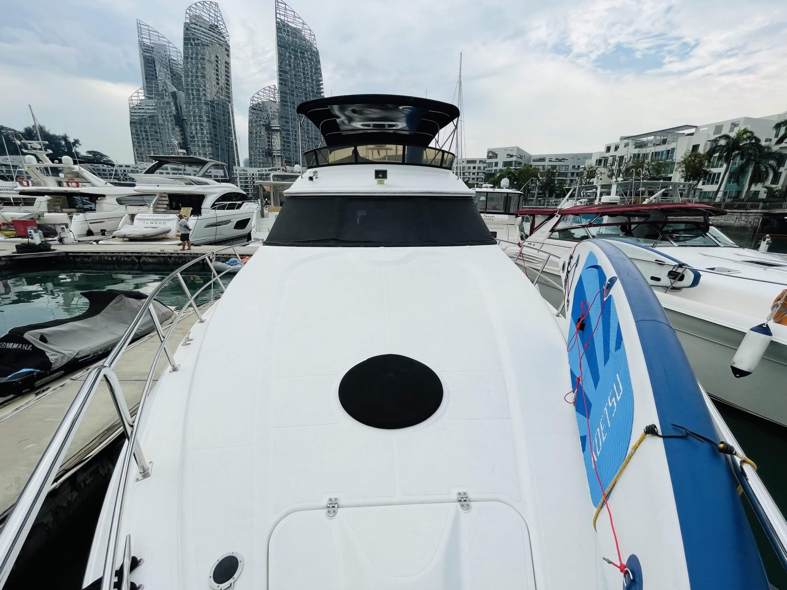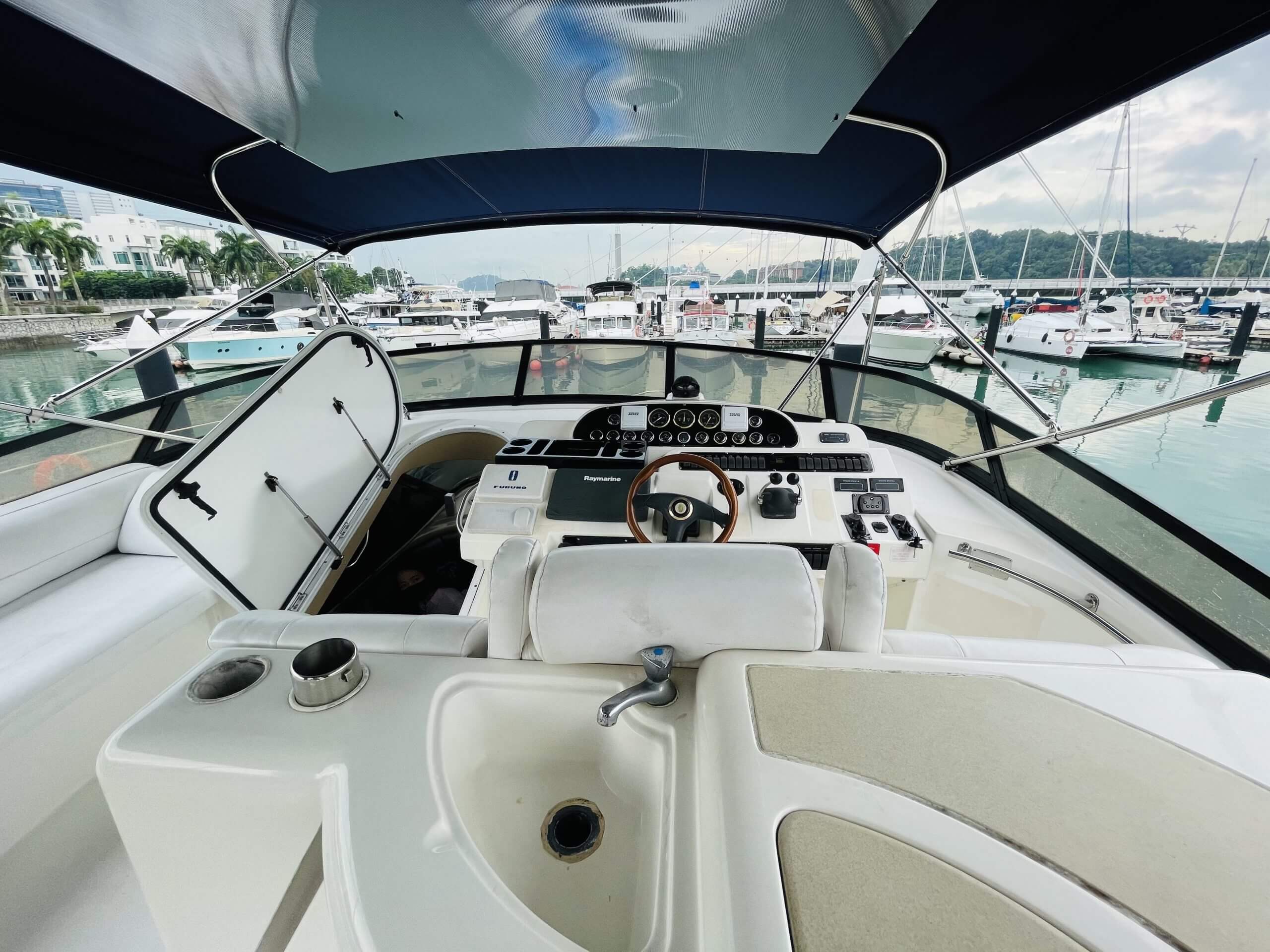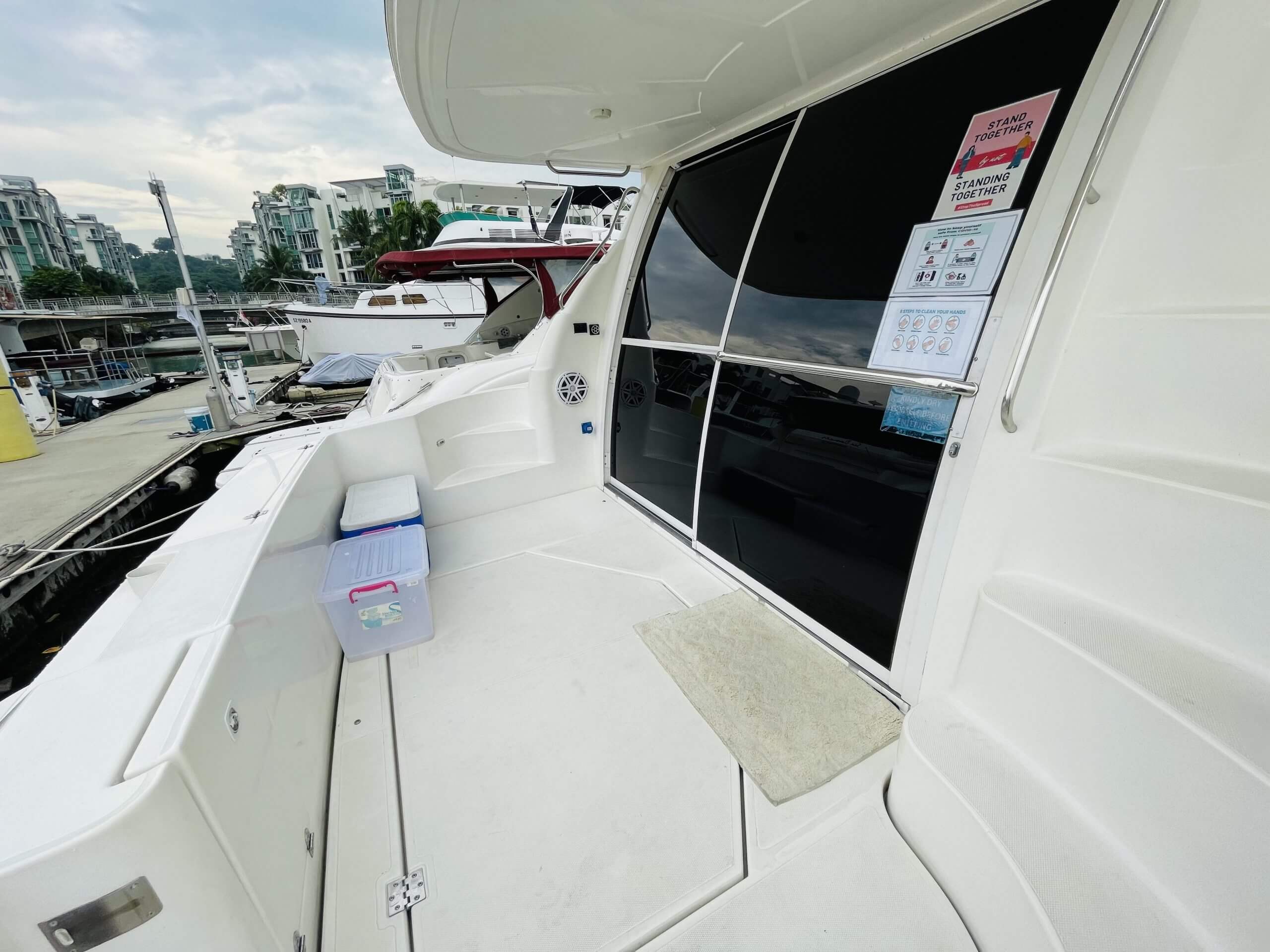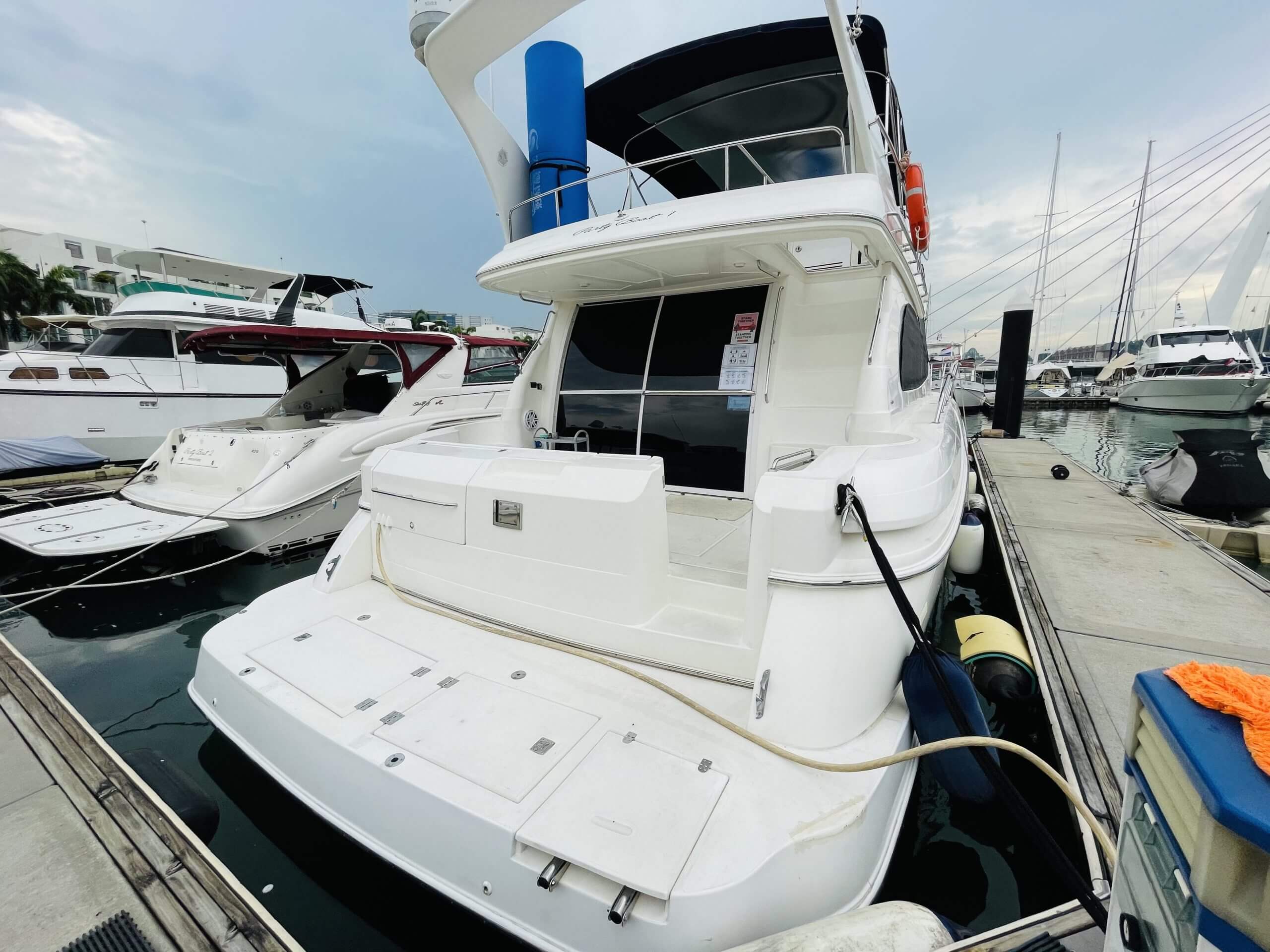 Why Knot 1 is Luxury Sedan 5000 Cruiser Yacht that is spacious and comfortable. It is 49.5 feet in length and featured with flybridge, saloon, cabin and bathroom. Karaoke system is available onboard with audio system and outdoor speakers connectable via bluetooth or audio jack. Currently berthed at Marina Keppel Bay, it is most suitable for both private yacht party (eg. family/friend’s birthday celebration) or small corporate yacht party event.