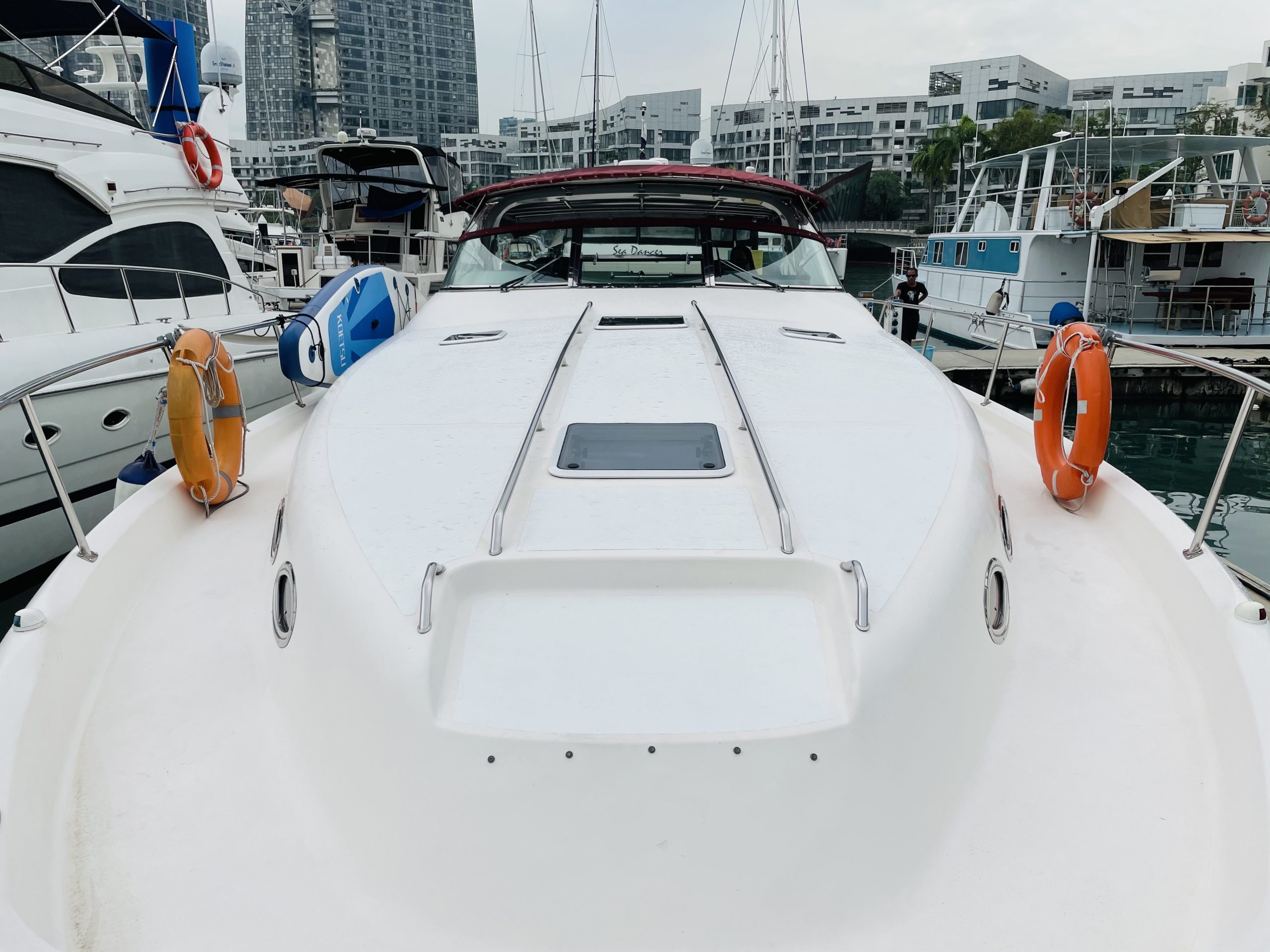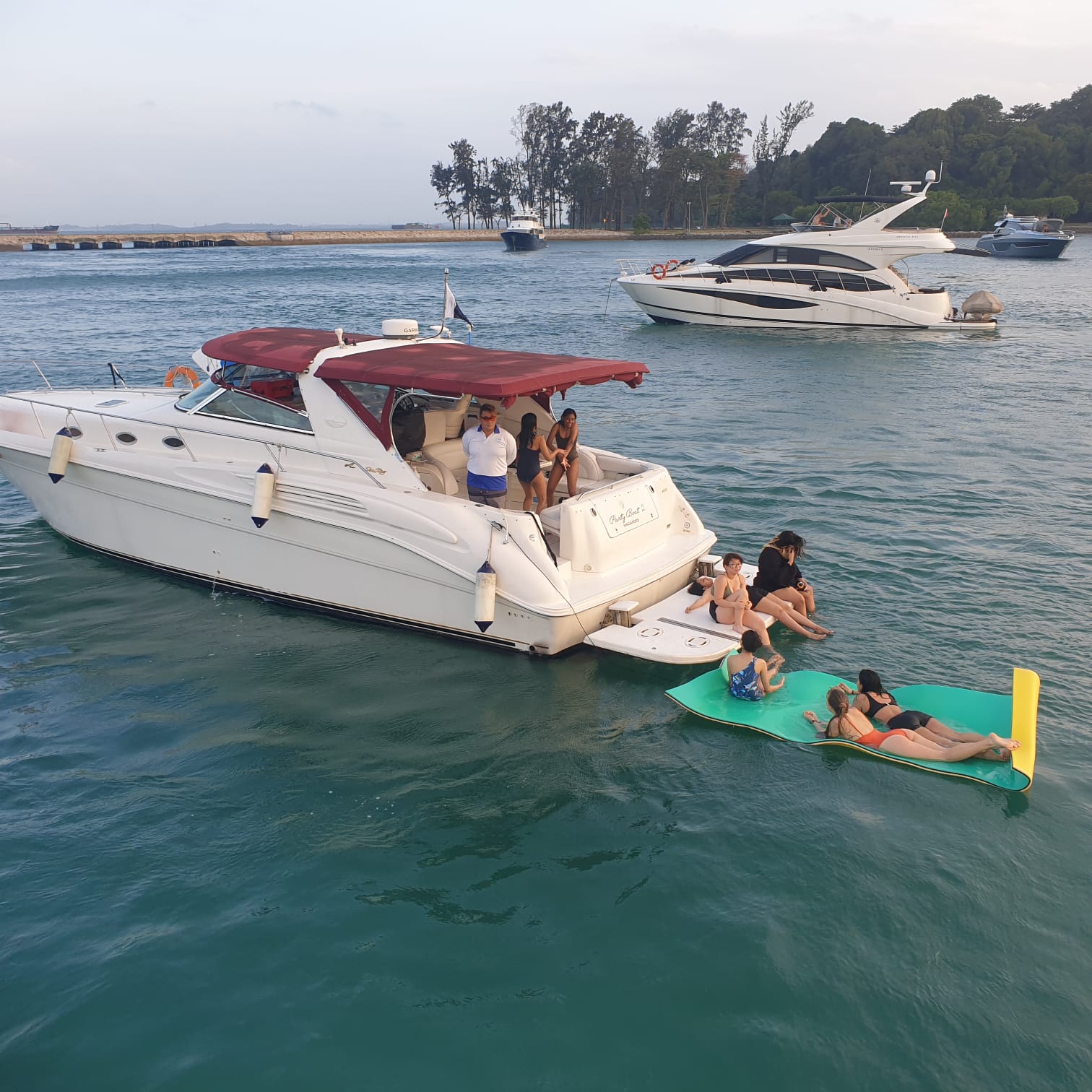 Why Knot 2 is a Searay Cabin Cruiser available for boat charter in Singapore. It is 46 feet in length and featured with lounge, saloon, cabin and bathroom. Karaoke system is available onboard with audio system and outdoor speakers connectable via bluetooth or audio jack. Currently berthed at Marina Keppel Bay, it is most suitable for both private yacht party (eg. family/friend’s birthday celebration) or small corporate yacht party event.
