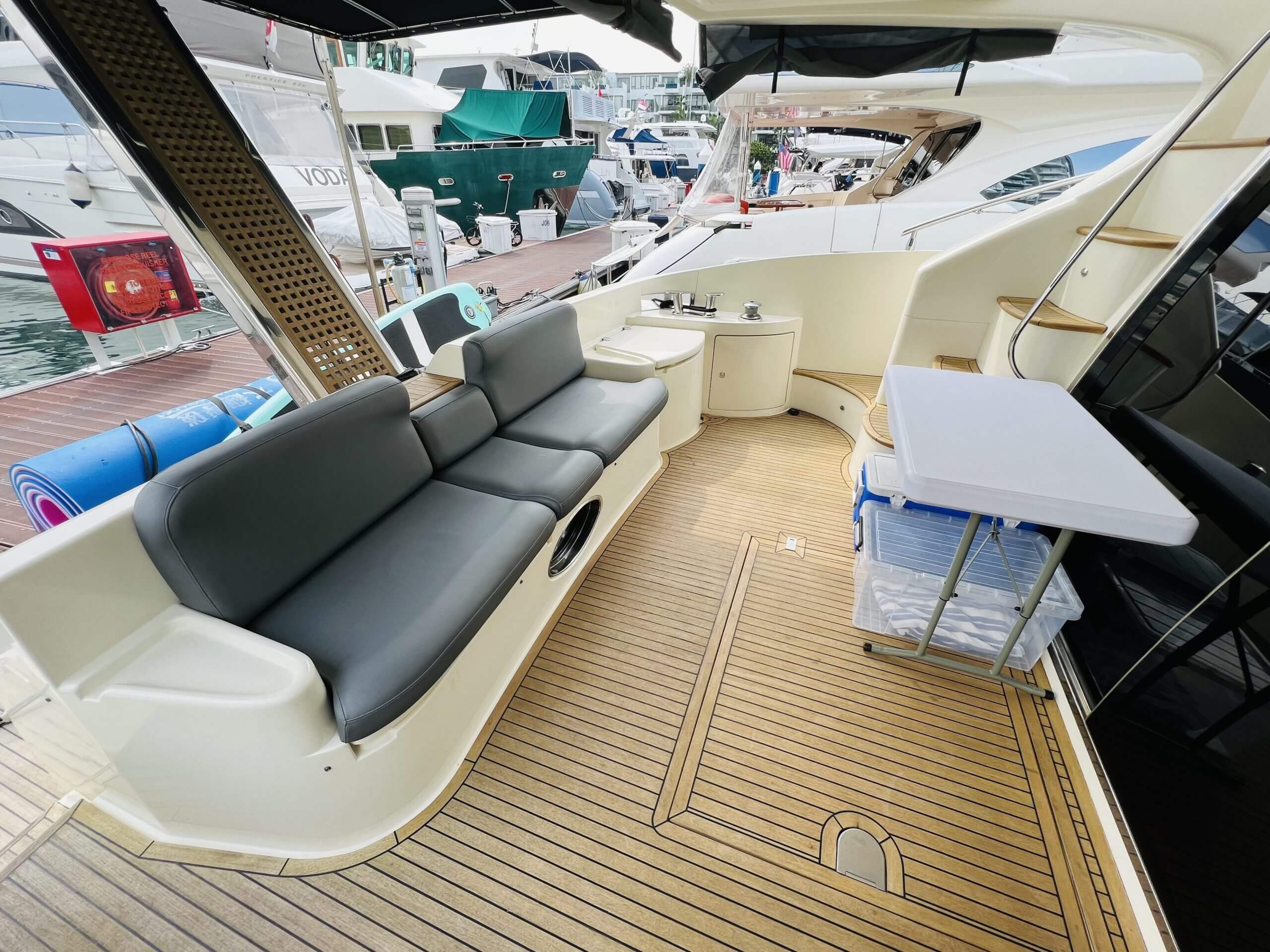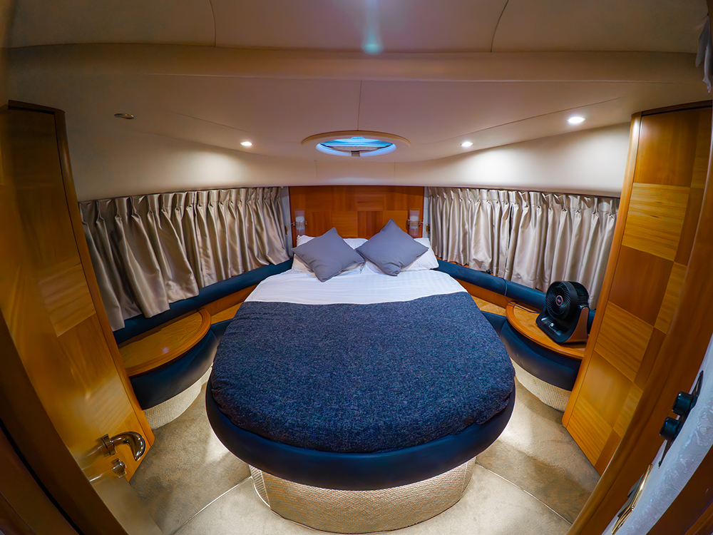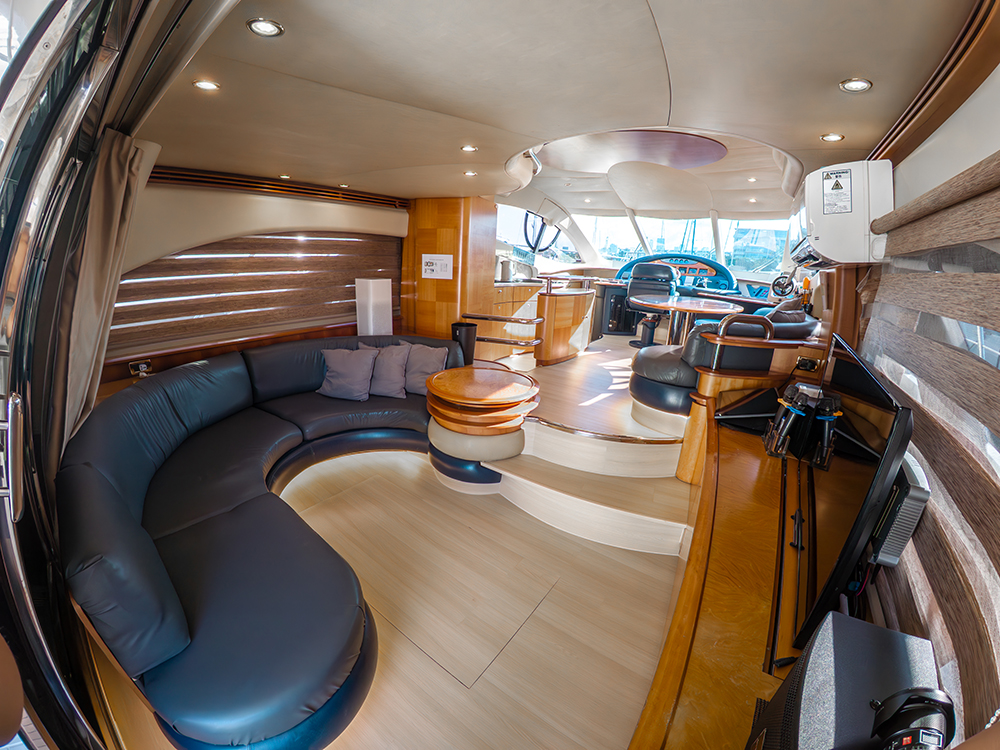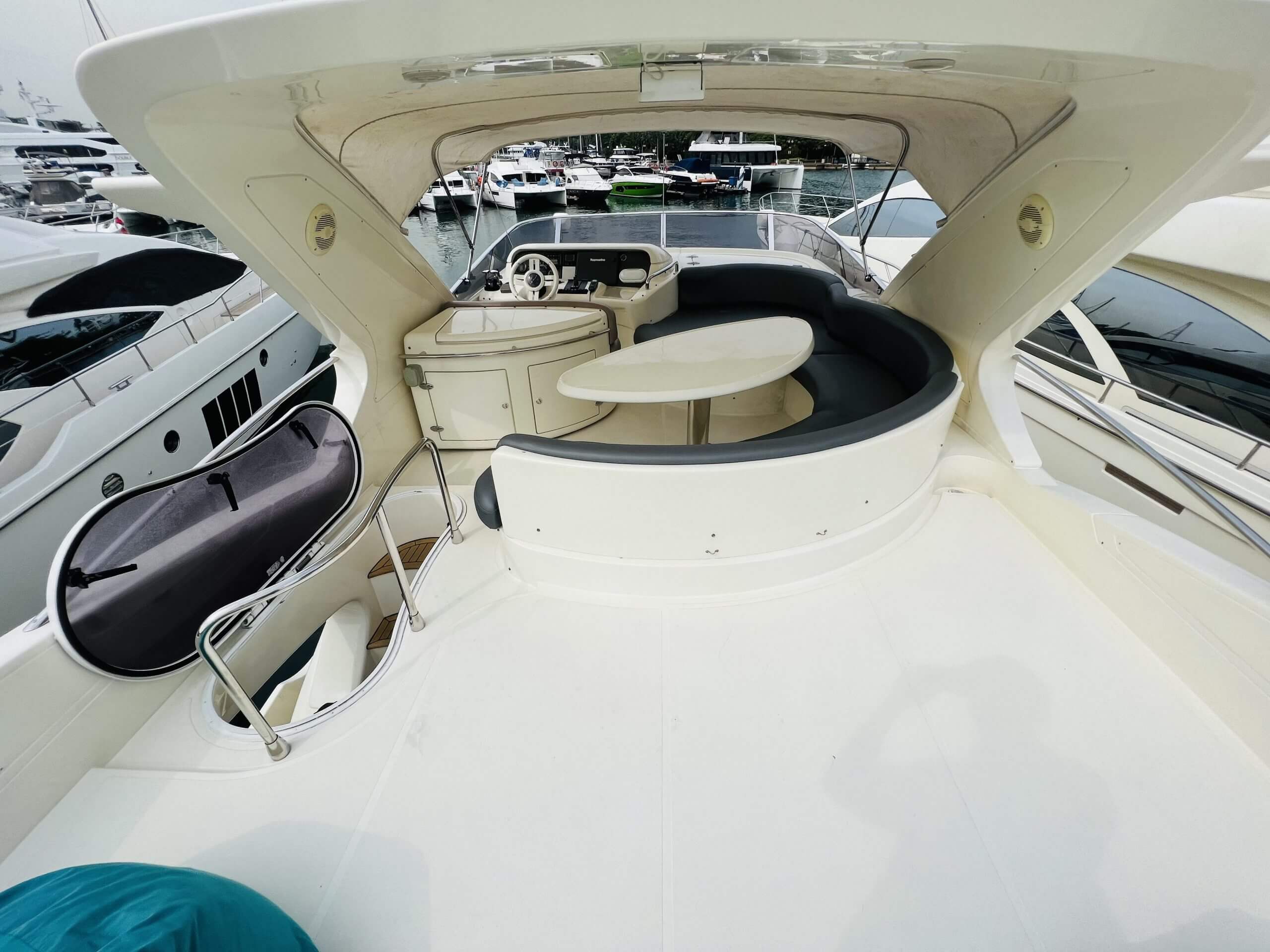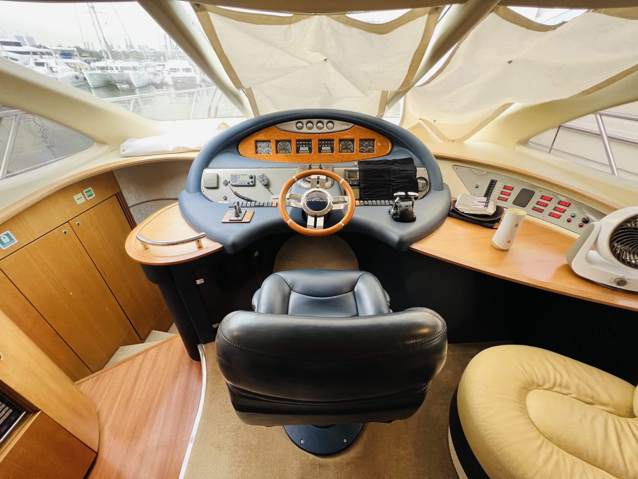 Zen Sea 3 is an Azimut 55-footer luxury yacht with a flybridge made in Italy. A fast, sporty and modern yacht with practical features, Azimuts are well known for their impeccable finishing and class. She has a huge flybridge that includes sun-bathing areas and a panoramic view of the surroundings. Below decks, she is partitioned with 3 cabins, 2 heads, a huge saloon and a cockpit. She is propelled by Caterpillar twin-engines that are powerful and reliable. Zen Sea 3 is a glamorous and luxurious yacht that offers comfort and excellent sea keeping. She is perfect for family outings, couple getaways, reunions and corporate networking events.