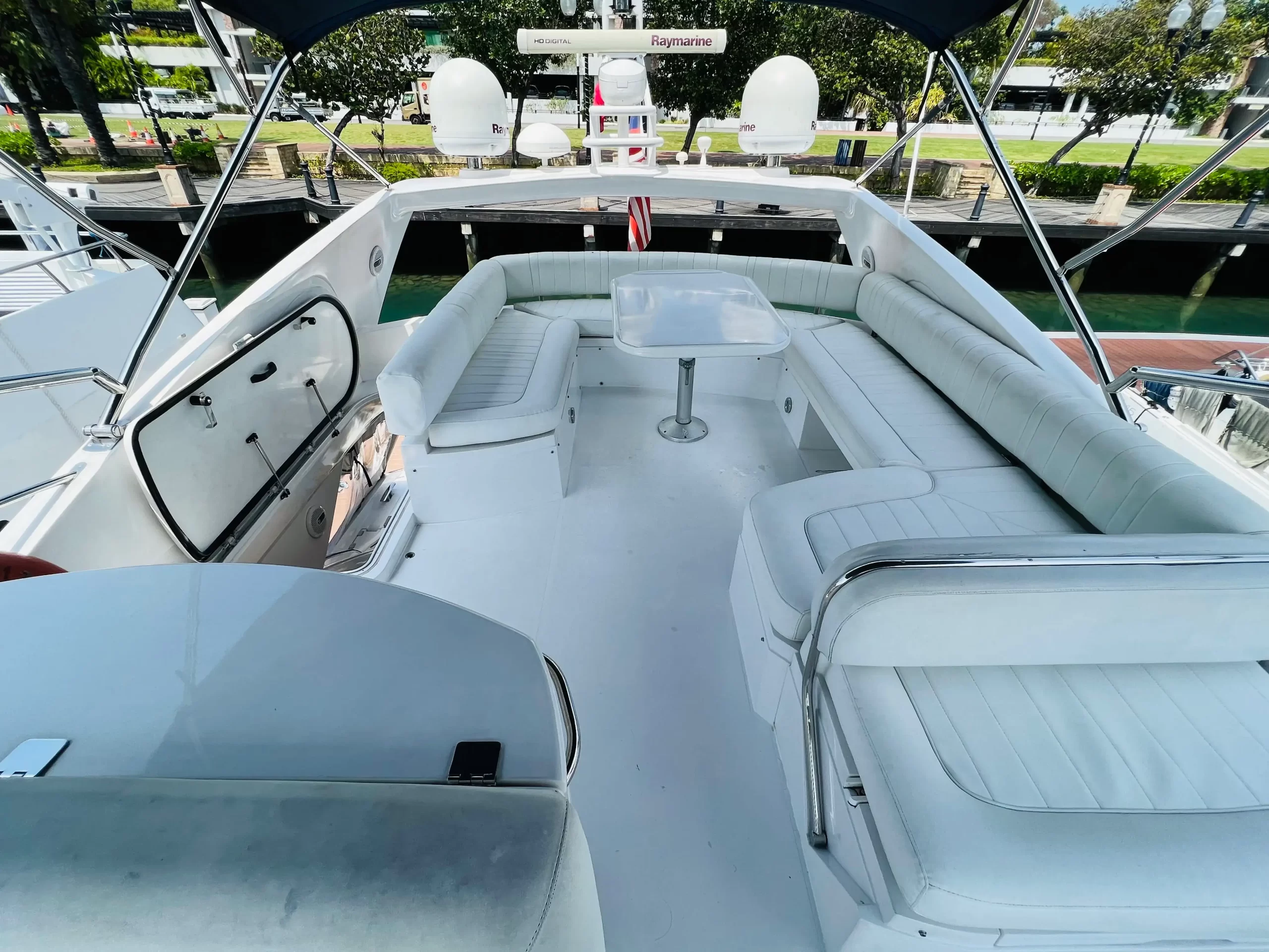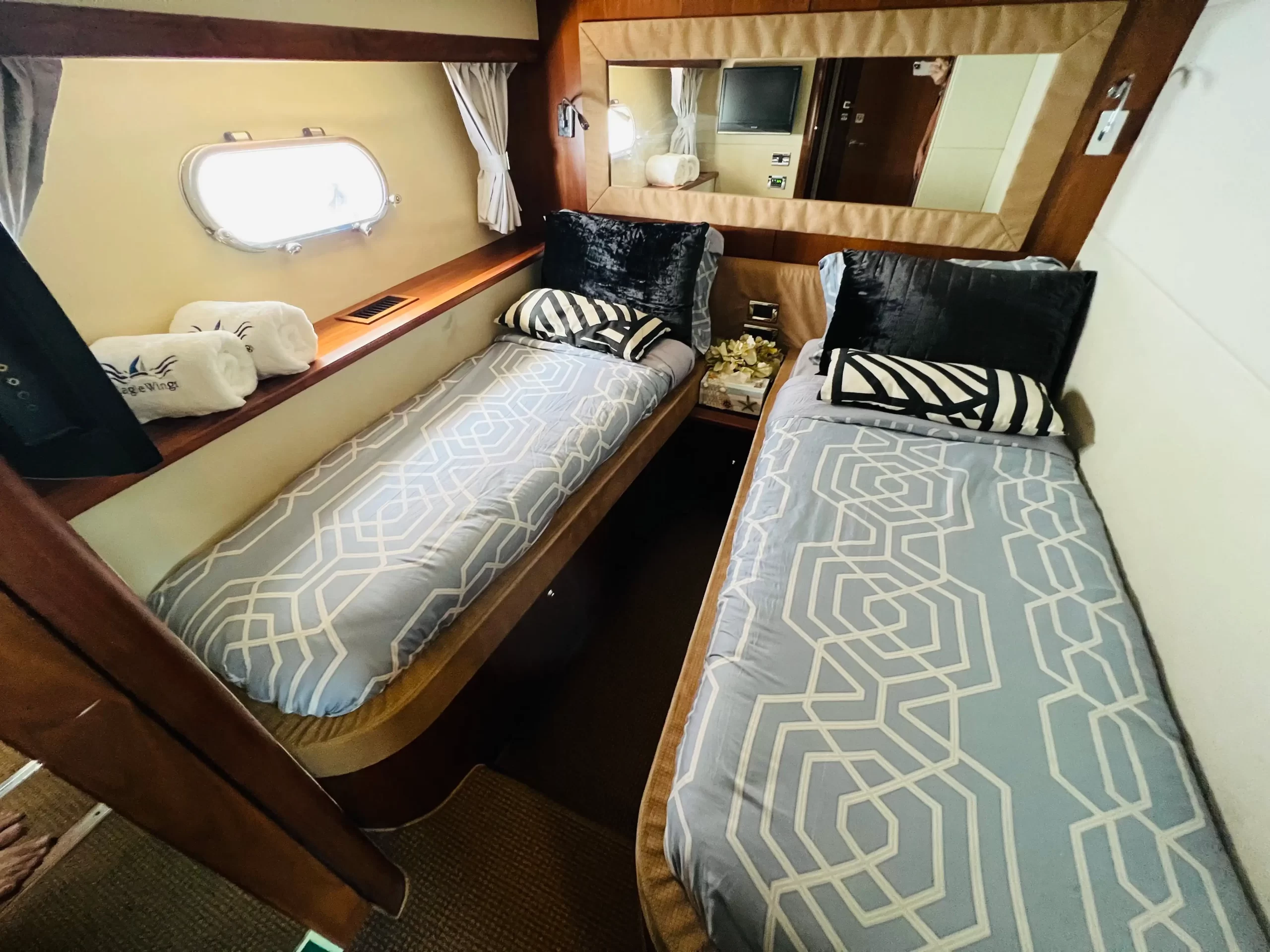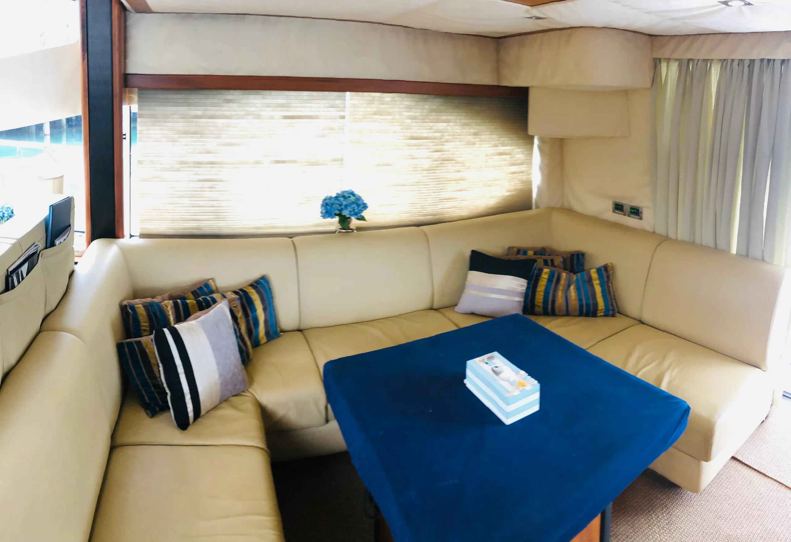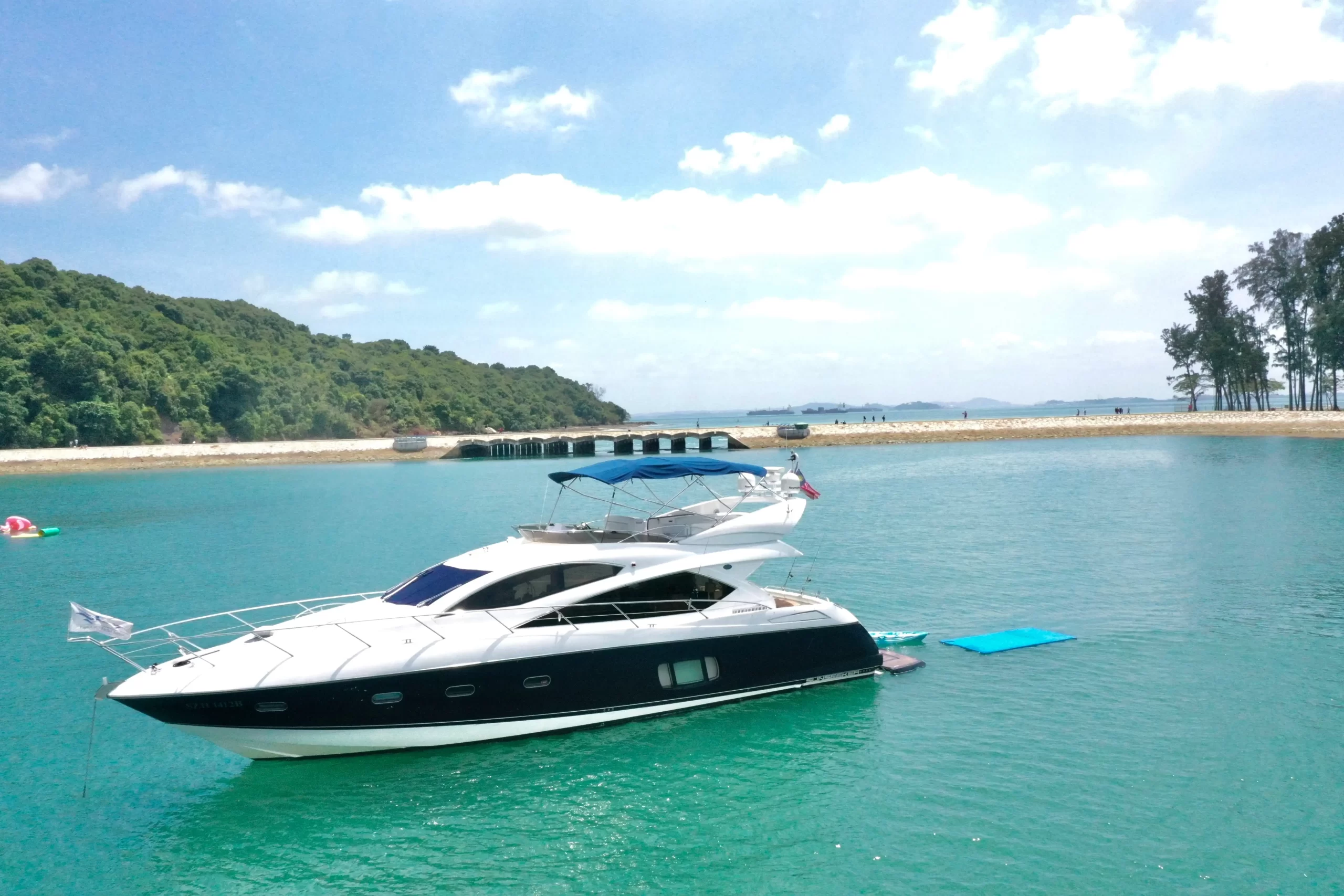 Eaglewings II is easily one of the most popular choices for smaller parties. Its spatial efficiency on board make it one of the best in the size tier, perfect for charters going for a more cosy feel. Host your family on one of the more luxurious yachts available for your next gathering; or take your friends for a chill evening out at sea as you clink glasses watching the setting sun over the horizon. Boasting 3 cabins which are home to 2 queen sized beds along a single bed, Eaglewings II is a perfect choice for that staycation with that special someone you have in mind. Or even take the romance up a notch by planning a romantic dinner out at sea using the dining facilities on board. Eaglewings II is the sibling yacht to Eaglewings I. Smaller in size but still maintaining the luxurious space on board-she can easily host 15 guests with ample space for everyone.