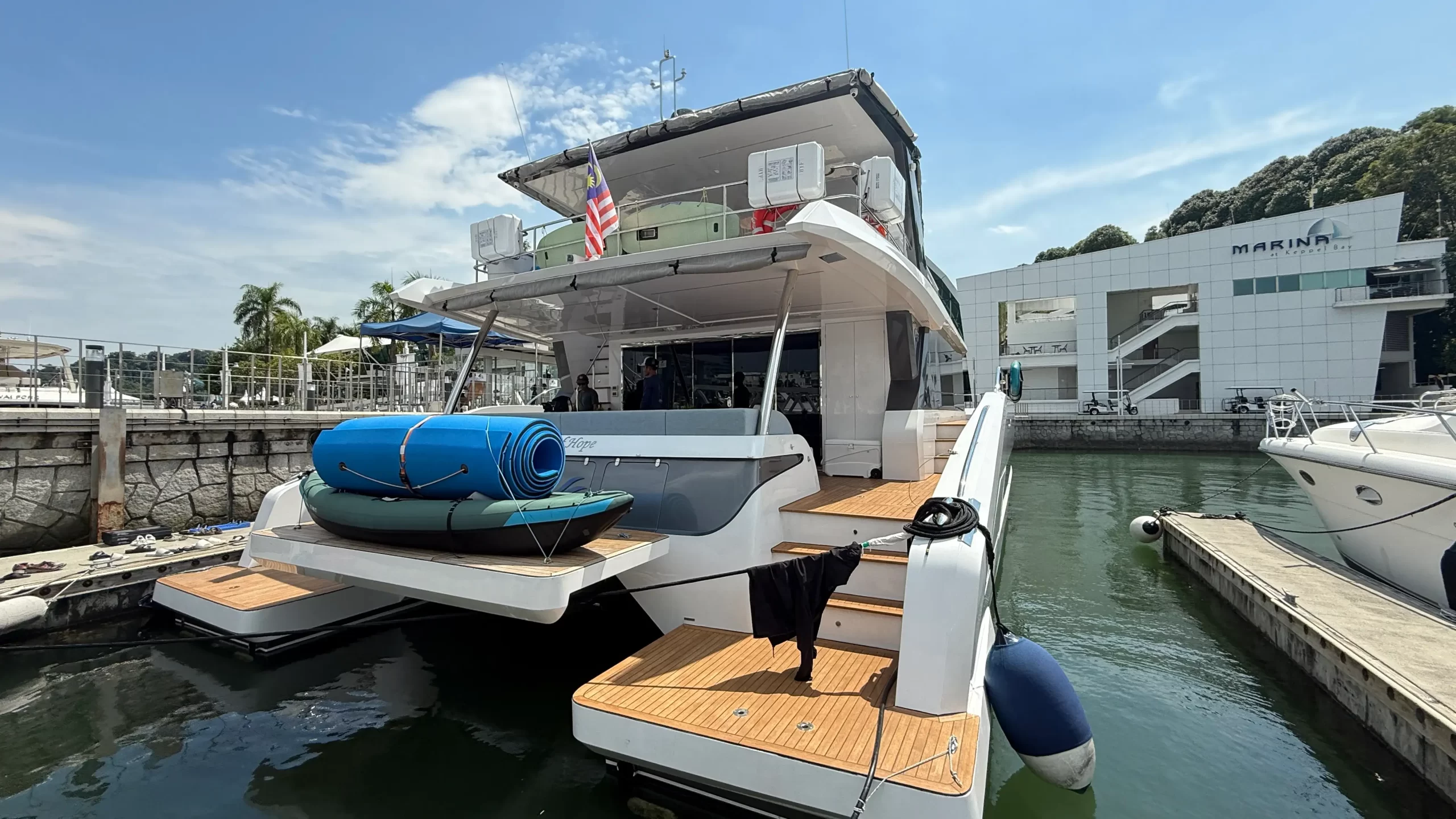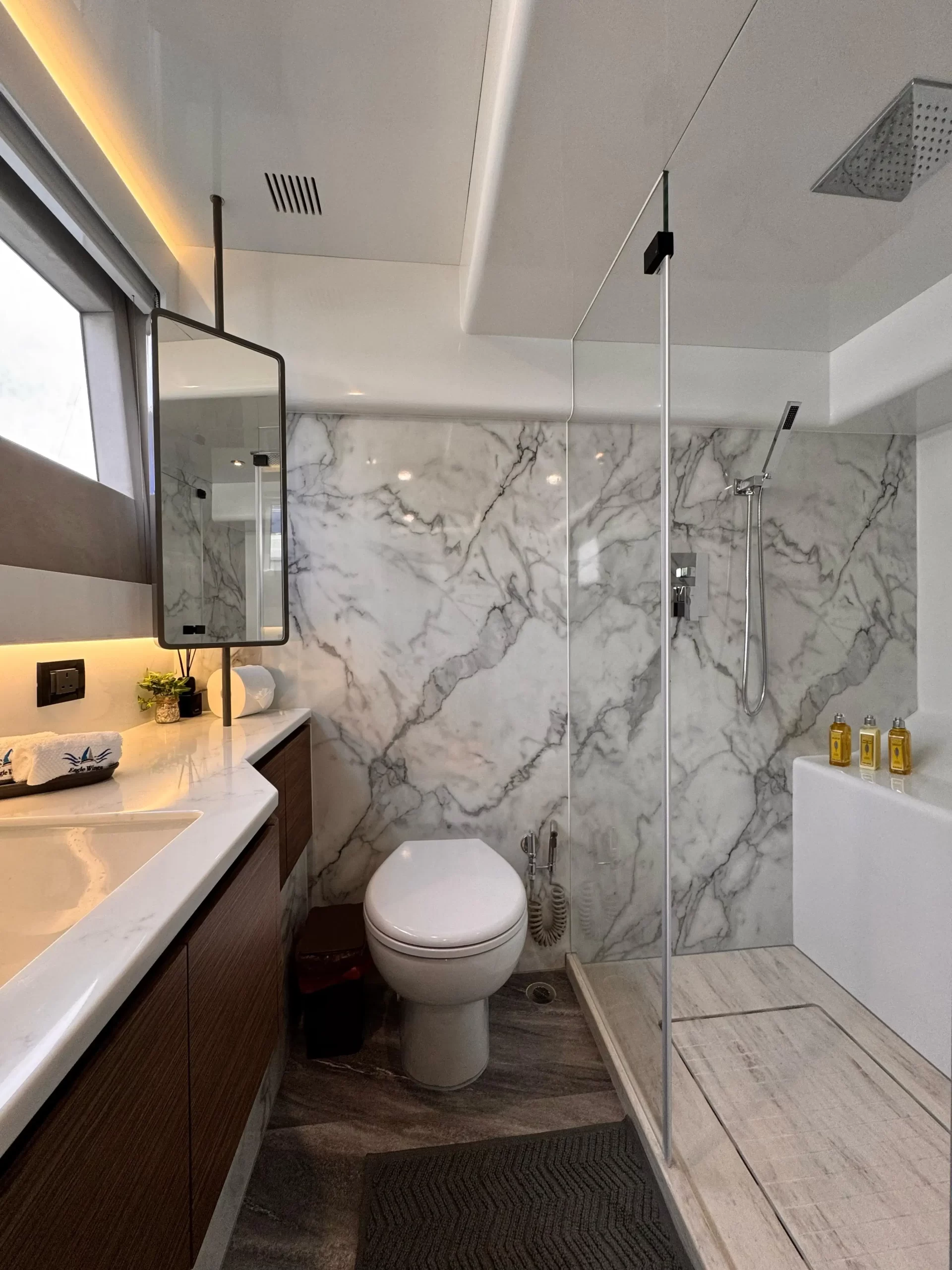 The Skywalker S60 Holiday is a luxurious 60-foot power catamaran designed foropulentsea voyages and social gatherings.The yacht accommodates up to 12 guests in its 4 elegantly appointed cabins, each featuring en-suite bathrooms, ensuring privacy and comfort. Its catamaran design enhances stability, providing a smooth cruising experience. The yacht’s design emphasizes both luxury and functionality, making it a standout choice for those seeking unparalleled comfort on the water.